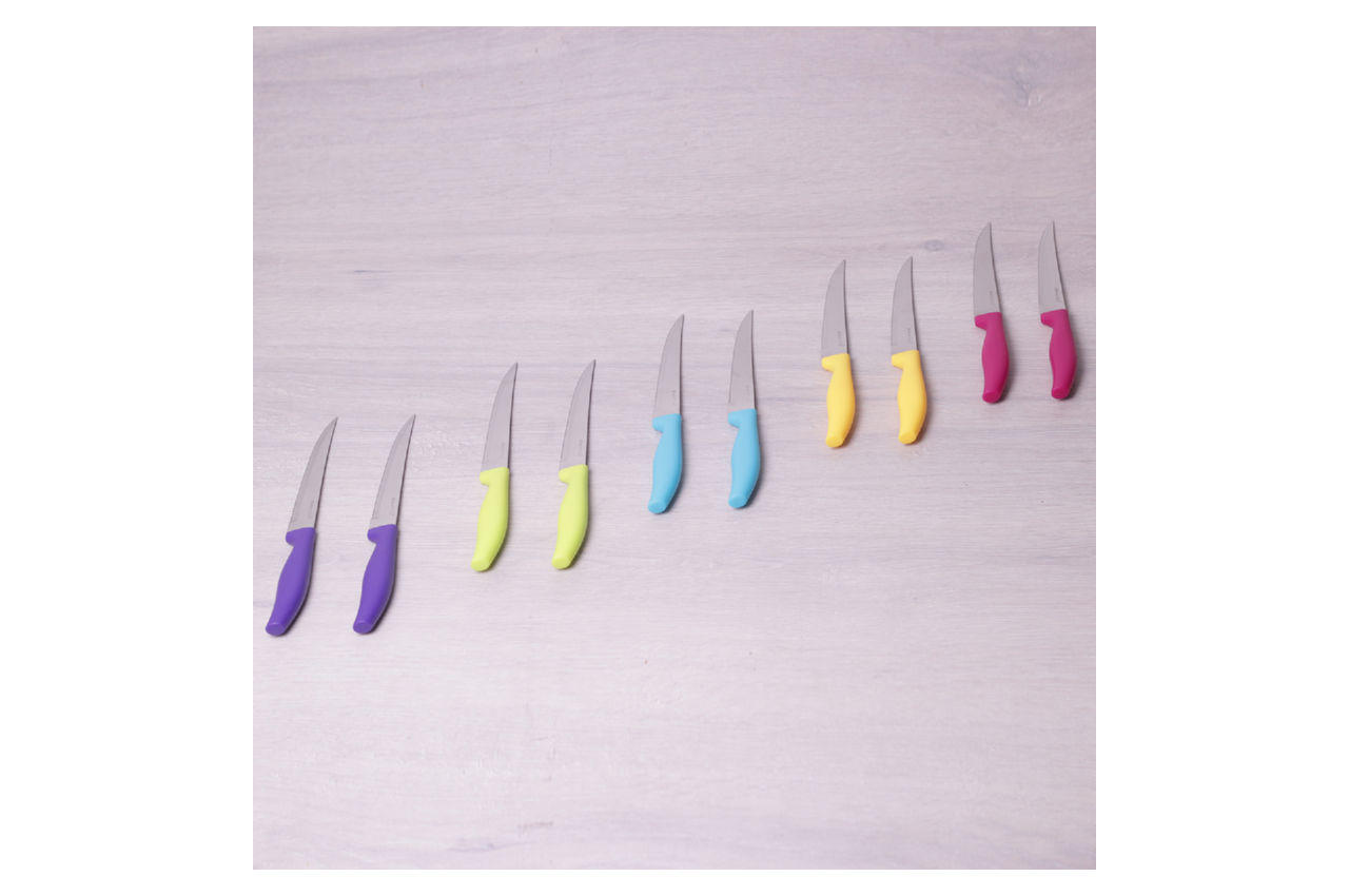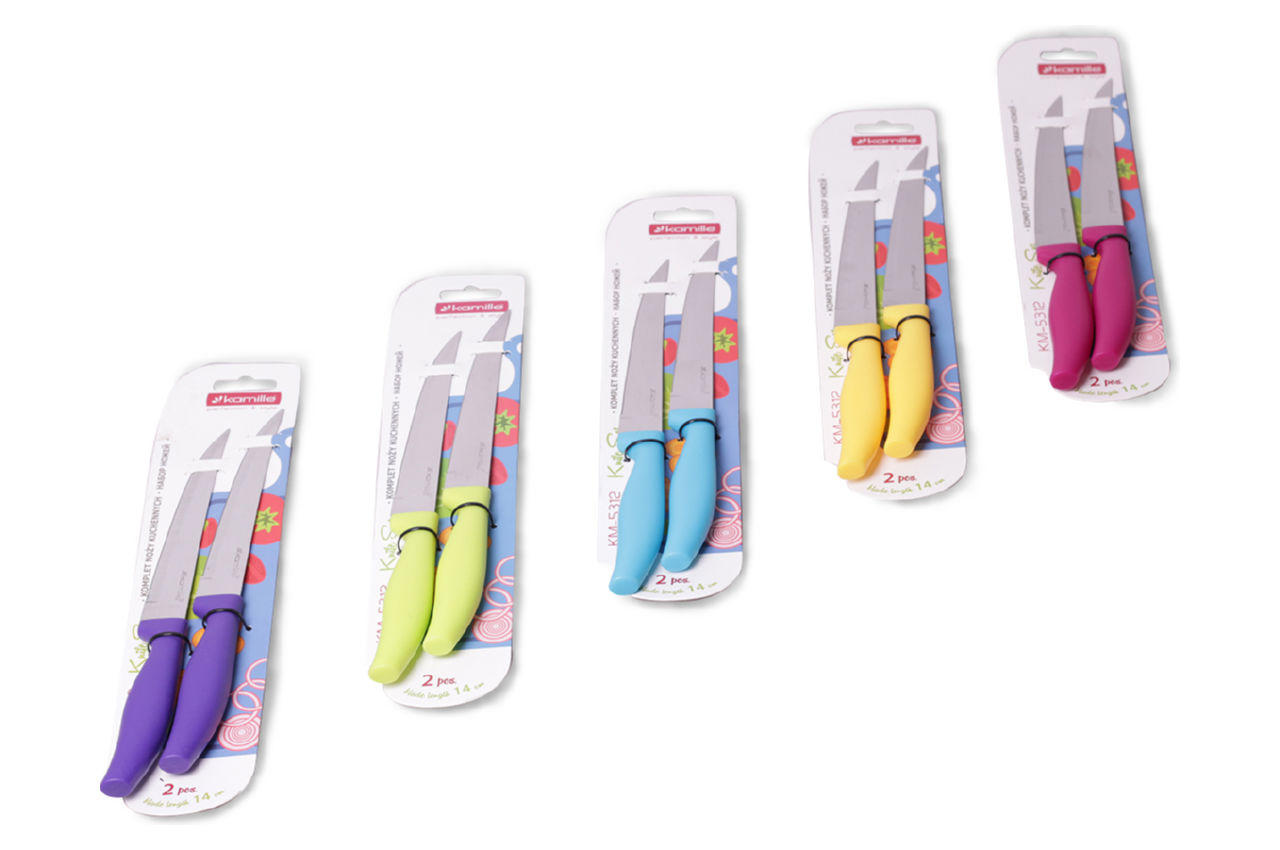Набір ножів Kamille те, без чого не можна обійтися при приготуванні їжі. За тисячі років кулінарної історії людство винайшло найрізноманітніші види ножів: універсальні, обробні, обвалочні чи філейні. Хороші кухонні ножі завжди цінувалися дуже високо. Матеріал: нержавіюча сталь, пластик