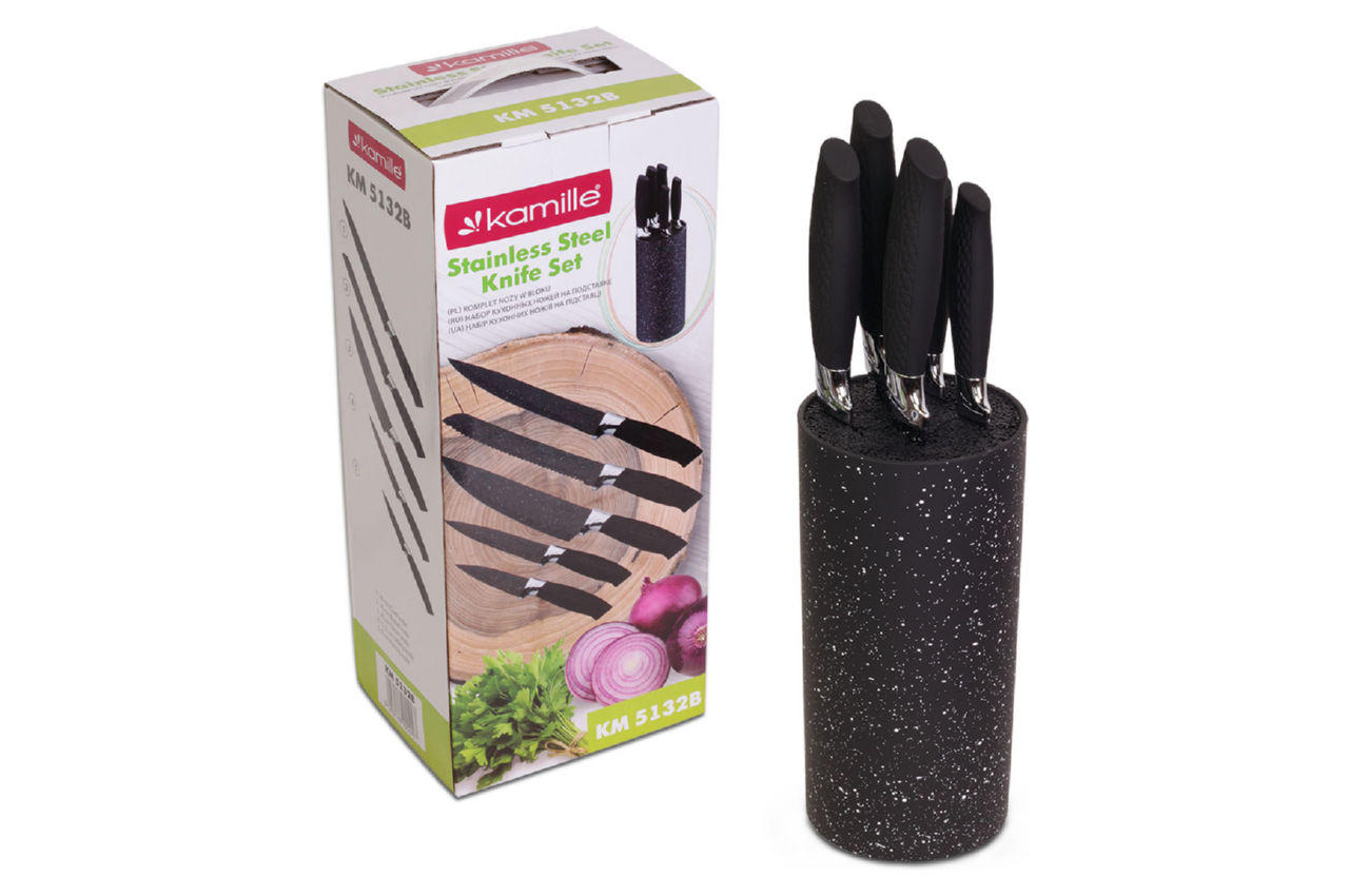 Набір кухонних ножів створений за найбільш сучасним і модним технологій і тенденцій. Він викличе захват навіть у самого вимогливого покупця. Набір кухонних ножів стане прикрасою Вашої кухні і додасть неповторність до Вашого інтер'єру.