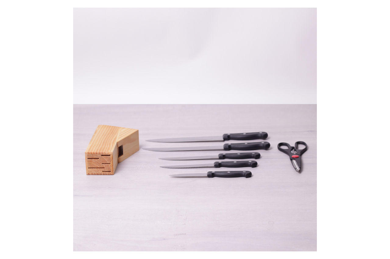 Набір кухонних ножів створений за найбільш сучасним і модним технологій і тенденцій. Він викличе захват навіть у самого вимогливого покупця. Набір кухонних ножів стане прикрасою Вашої кухні і додасть неповторність до Вашого інтер'єру.
