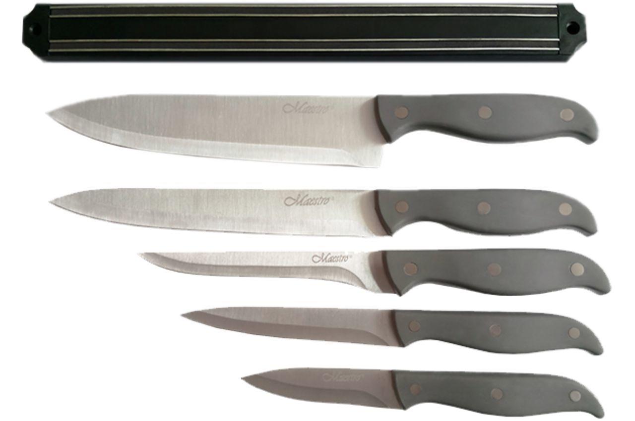 6-предметний набір ножів складається з: кухарський ніж, ніж загального призначення, ніж обвалочний, універсальний ніж, ніж для чищення овочів, магнітна планка.