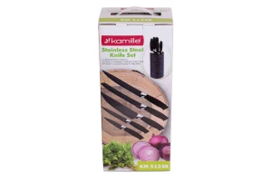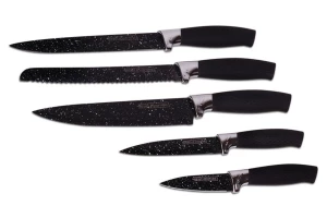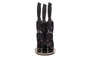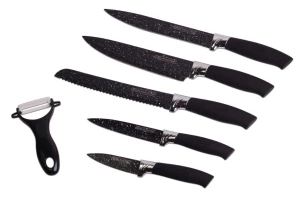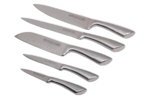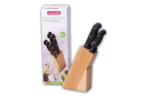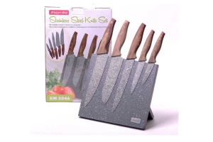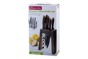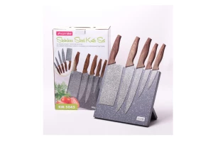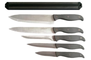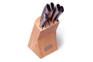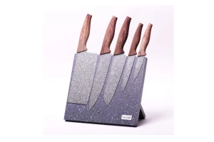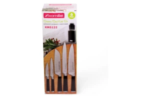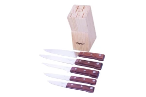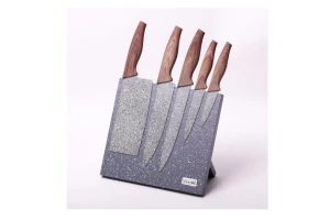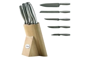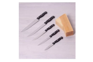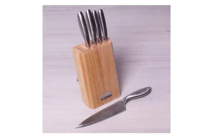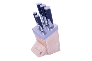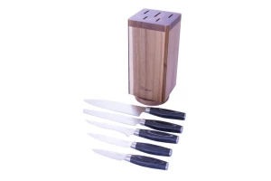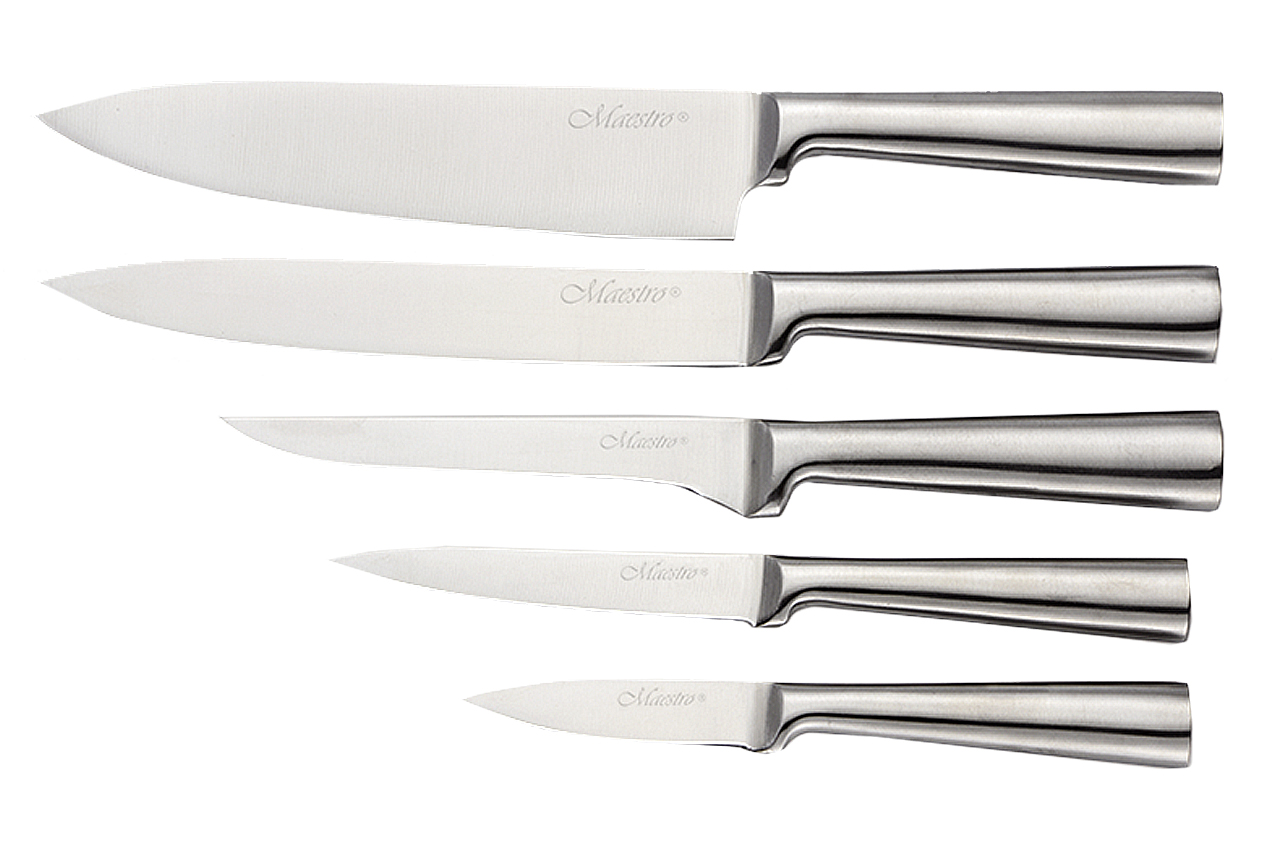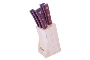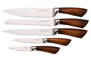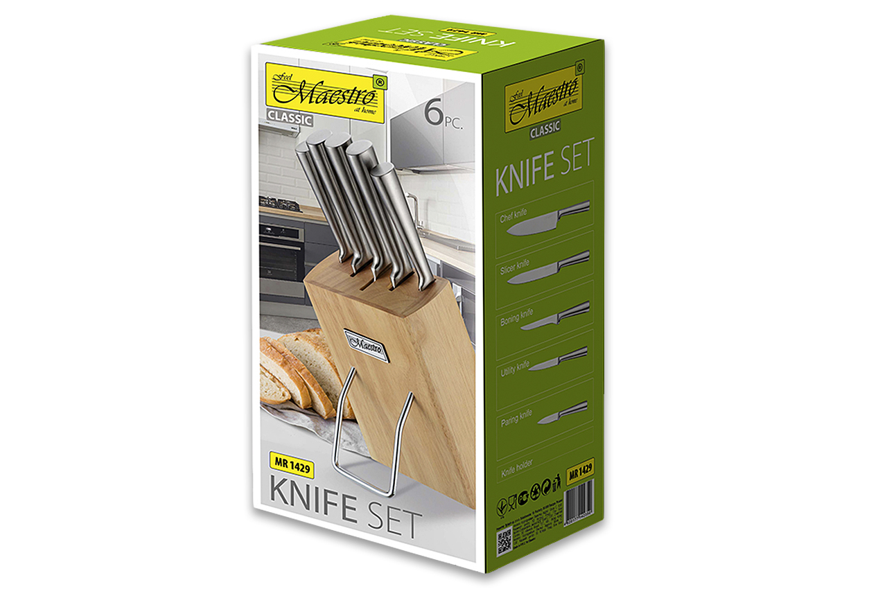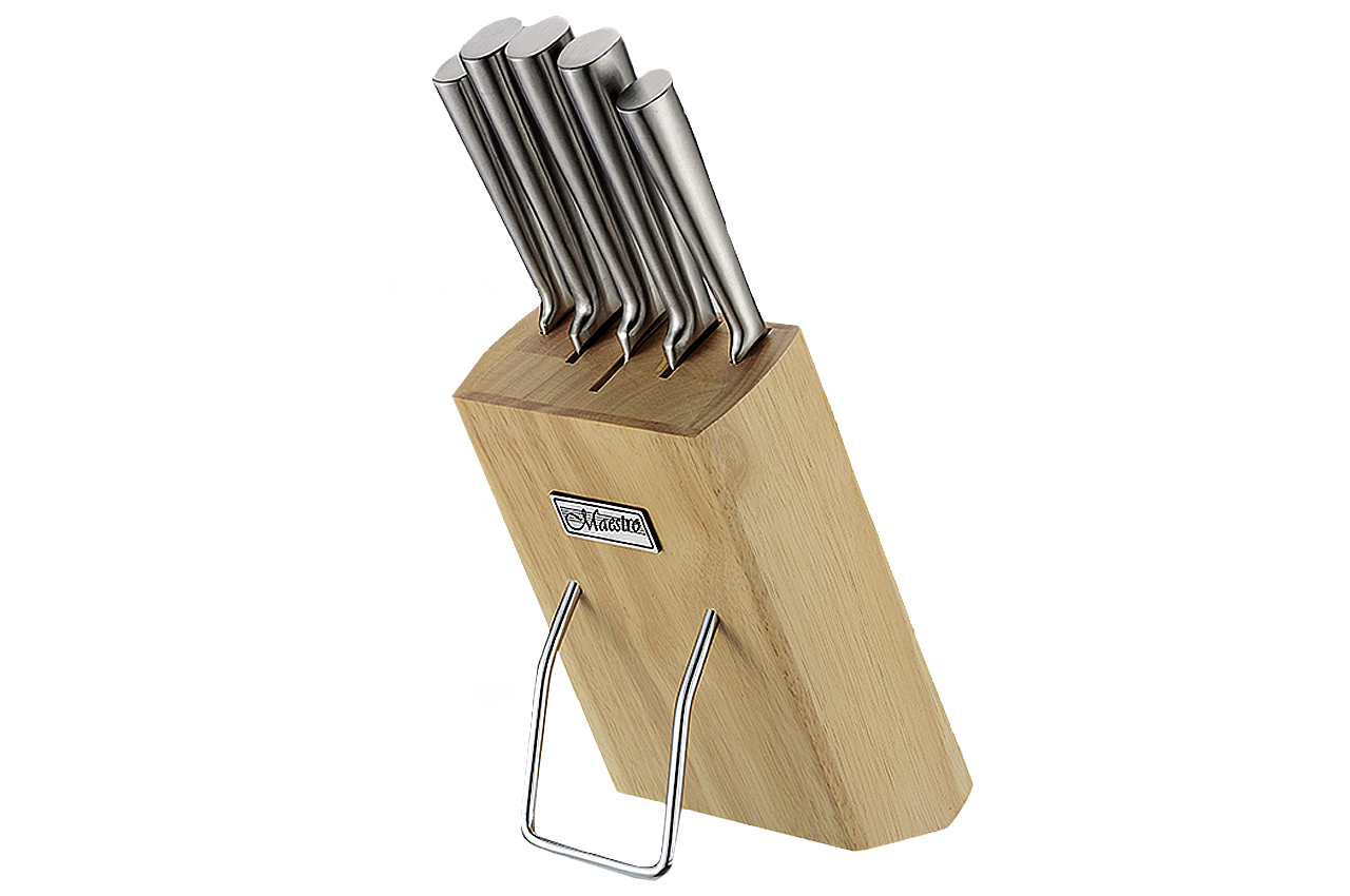 Набір ножів з 6 предметів Maestro MR 1429 відрізняється зручною ергономічною ручкою, що плавно переходить у лезо. До складу набору входять 5 ножів з нержавіючої сталі та дерев'яна підставка.