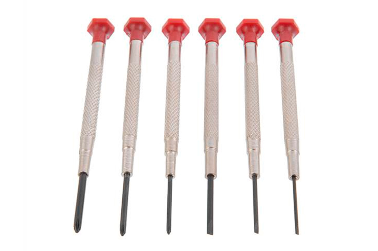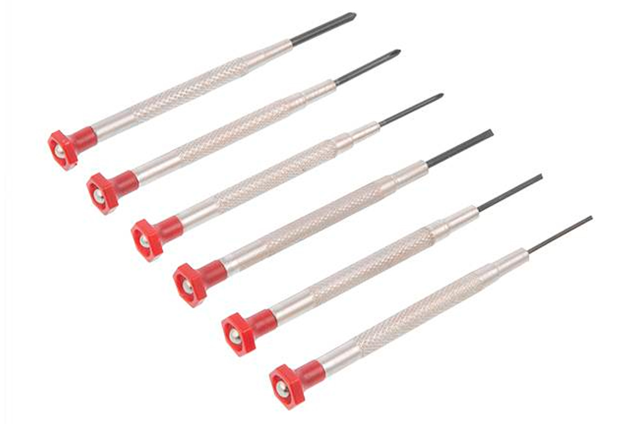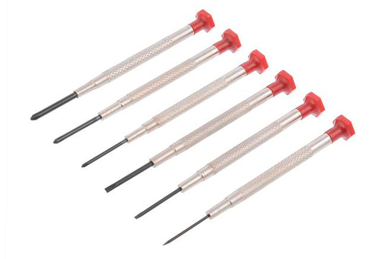 Набір прецизійних часових викруток: SL1.4, SL1.8, SL2.5, PH0, PH00 і PH1. Поставляється в пластиковій коробочці. Кількість в наборі: 6 шт