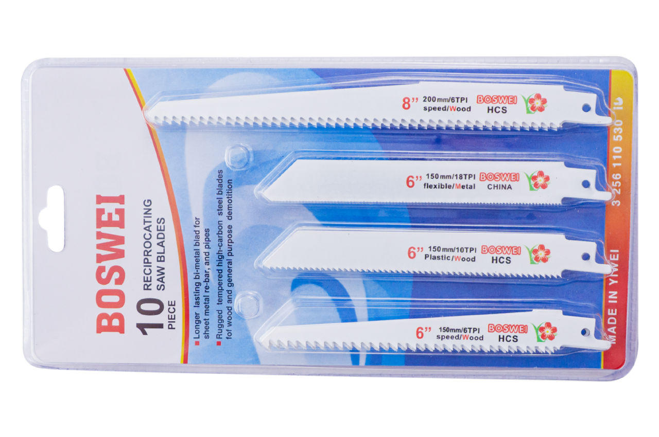 Набір пиляльних полотен для пилки шабельної Рамболд для дерева, ДСП, фанера, метал, алюміній, профіль. Кількість інструментів: 10 шт. Зернистість: Р200