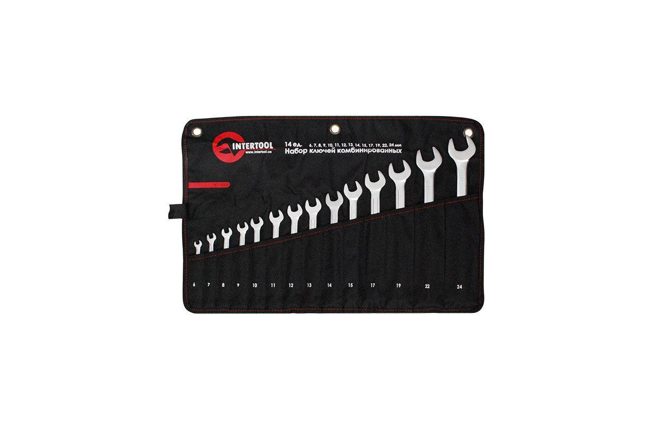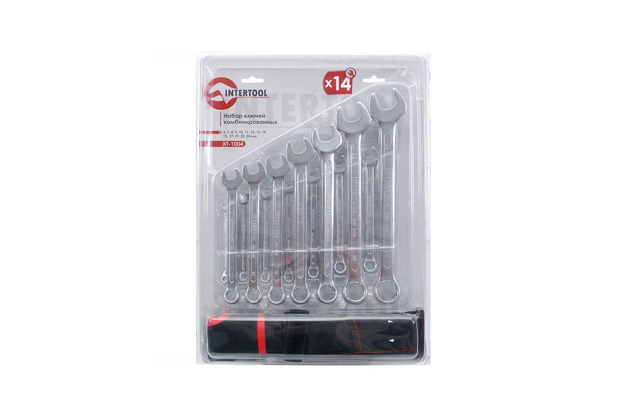 XT-1004 - відмінний набір з 14 комбінованих ключів, кожен з яких представляє собою поєднання ріжкового і накидного. Комбіновані ключі застосовуються для монтажних, слюсарних робіт. Особливо широко вони використовуються автослюсаря. Ключі універсальні і практичні, дозволяють працювати з різними кріпильними елементами - болтами, гайками і т.д. Ріжкова сторона ключів є найпопулярнішою серед з'єднань і має велику область застосування. Накидна сторона, завдяки кільцевому будовою, в момент прикладання зусилля дозволяє розподілити навантаження рівномірно. Це знижує ризик «злизати» грань кута. Кількість ключів в наборі: 12 од .; Габаритні розміри: 430х350 мм; Розміри: 6-14,17,19,22 мм