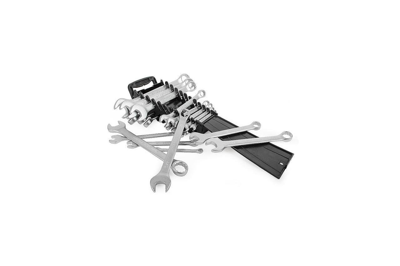 HT-1305 - це набір з 22 дюймових і метричних комбінованих ключів, кожен з яких представляє собою поєднання ріжкового і накидного. Розмірна лінійка набору - метричні: 6, 7, 8, 9, 10, 11, 12, 13, 14, 17, 19 мм; дюймові: 1/4 ", 5/16", 3/8 ", 7/16", 1/2 ", 9/16", 5/8 ", 11/16", 3/4 ", 13/16 ", 7/8". Широкий вибір розмірів дозволить підібрати найбільш зручний варіант в кожному конкретному випадку. Ключі виготовлені з хром-ванадієвої сталі. Її фізичні та хімічні властивості обумовлюють високу стійкість до механічних навантажень, корозійну стійкість і твердість. Кількість ключів в наборі: 22 од .; Розміри: 6-19 мм <br> 1/4 "-7/8"