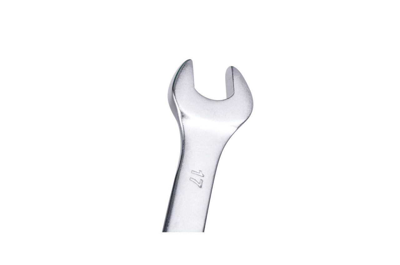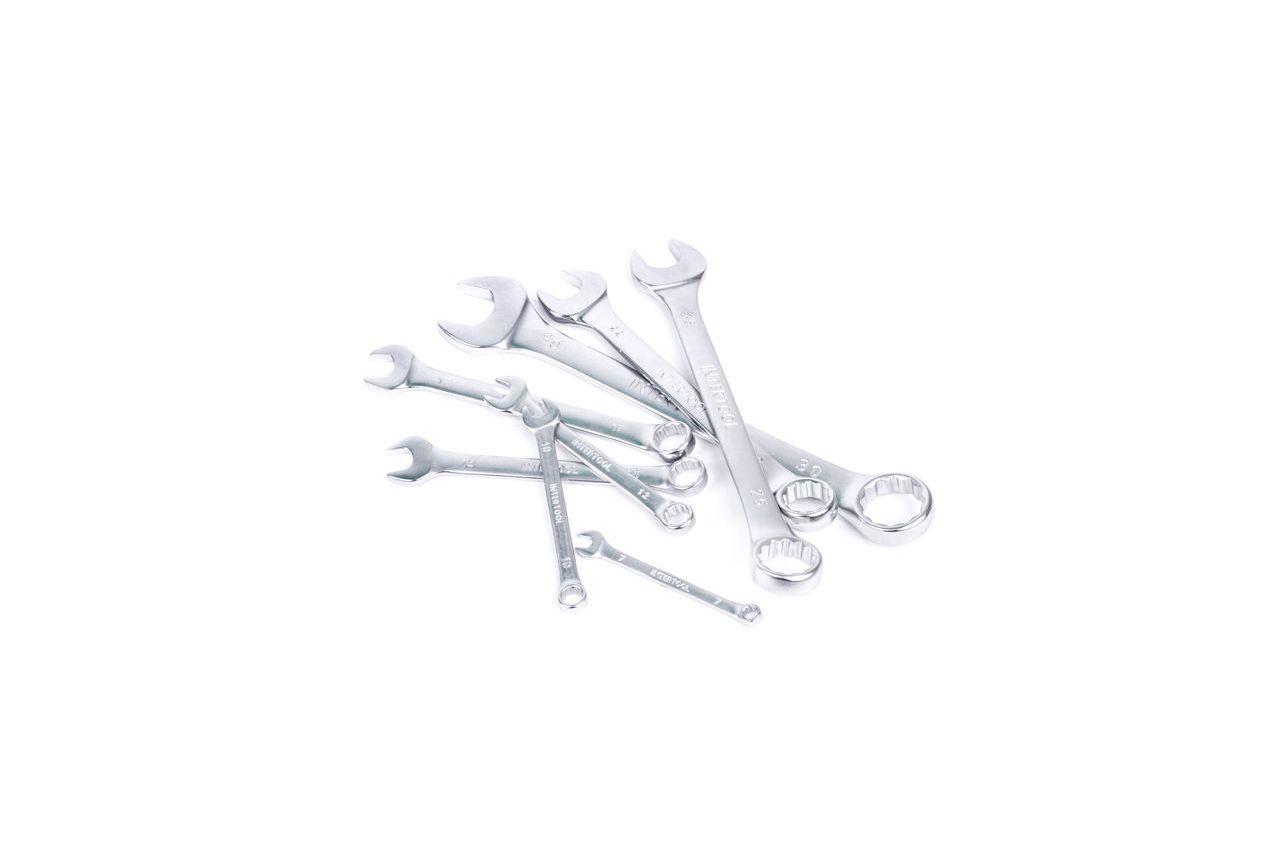 NTERTOOL HT-1200 - це набір з 25 комбінованих ключів, кожен з яких представляє собою поєднання ріжкового і накидного гайкового ключа. Розмірна лінійка набору - від 6 до 32 мм. Обидві сторони ключів мають однаковий розмір головки. Широкий вибір розмірів дозволить підібрати найбільш зручний варіант в кожному конкретному випадку. Ключі виготовлені з хром-ванадієвої сталі. Зручна форма і вигин рукоятки ключа забезпечують оптимальні умови для прикладення зусилля, завдяки чому легко можна закрутити / відкрутити кріпильний елемент. Ключі поставляються в зручному згортати чохлі з кишеньками під ключ кожного розміру. Кількість ключів в наборі: 25 од .; Розміри: 6-32 мм