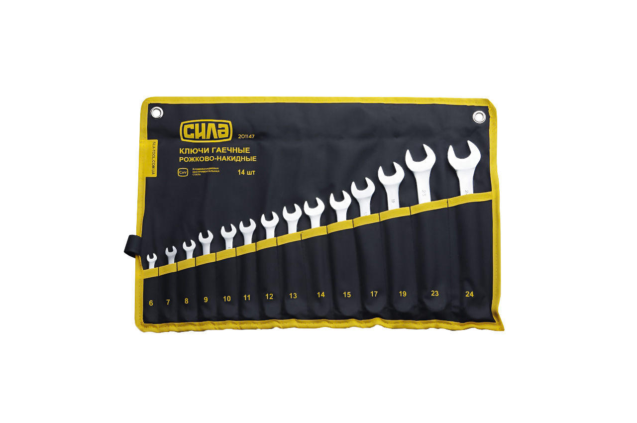 Набір рожково-накидних ключів Сила - 14 шт. (6-24 мм) в чохлі