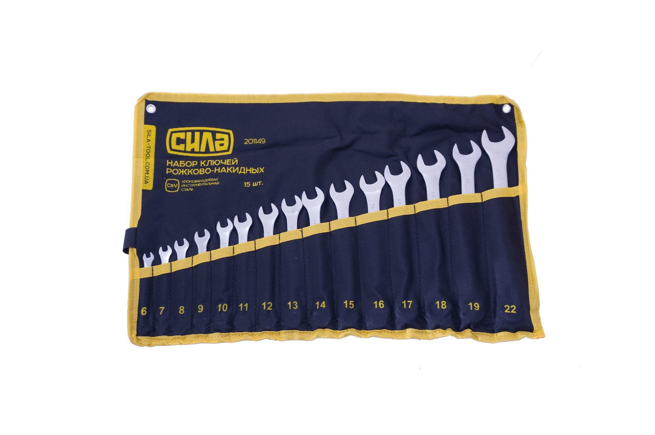 Набір рожково-накидних ключів Сила - 15 шт. (6-22 мм) в чохлі