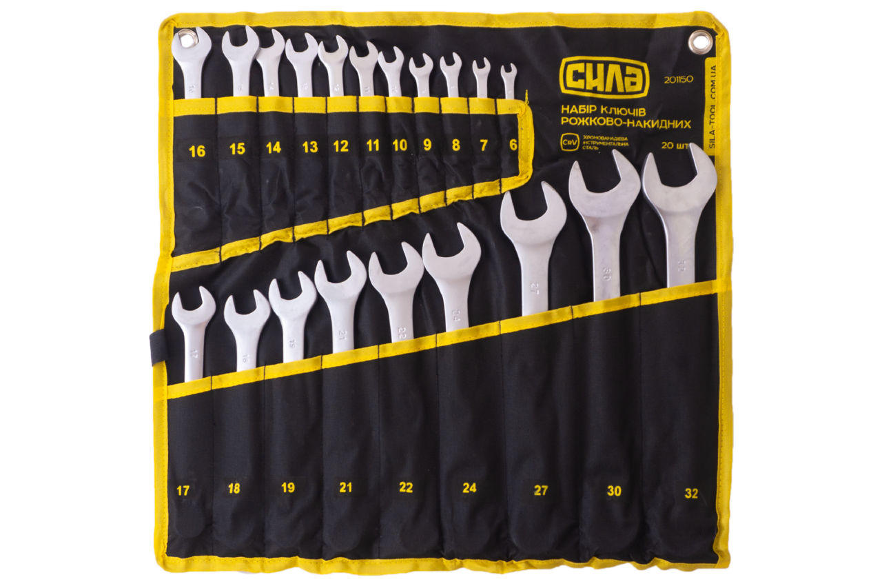 Набір рожково-накидних ключів Сила - 20 шт. (6-32 мм) в чохлі