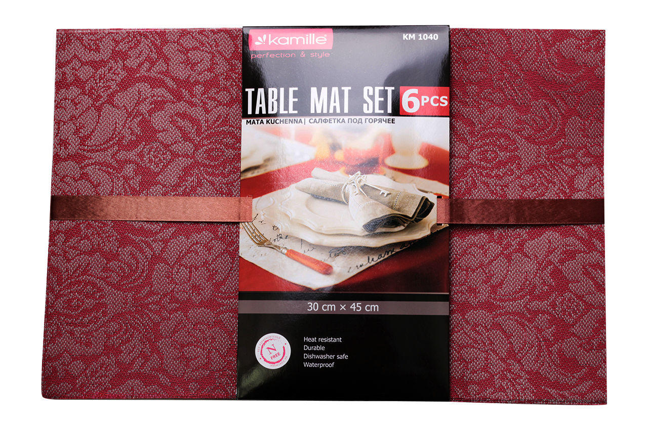 Набір серветок сервірувальних Kamille - необхідний і функціональний аксесуар в будь-якому будинку. Такі серветки незамінні при сервіровці столу, їх можна покласти під гарячий посуд або під тарілки, що допоможе запобігти пошкодження стільниці або скатертини і вберегти поверхню від забруднень. Матеріал: полівінілхлорид