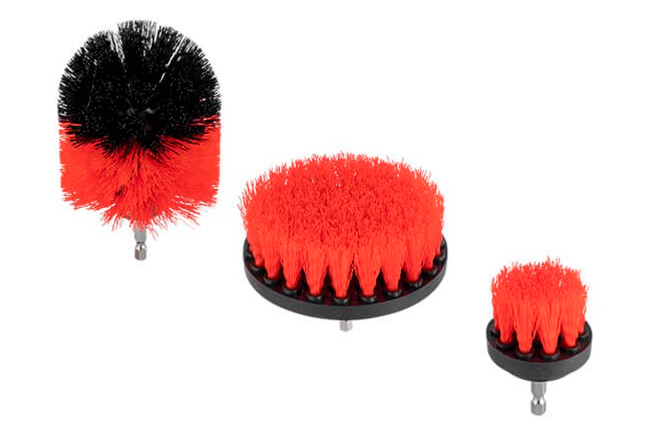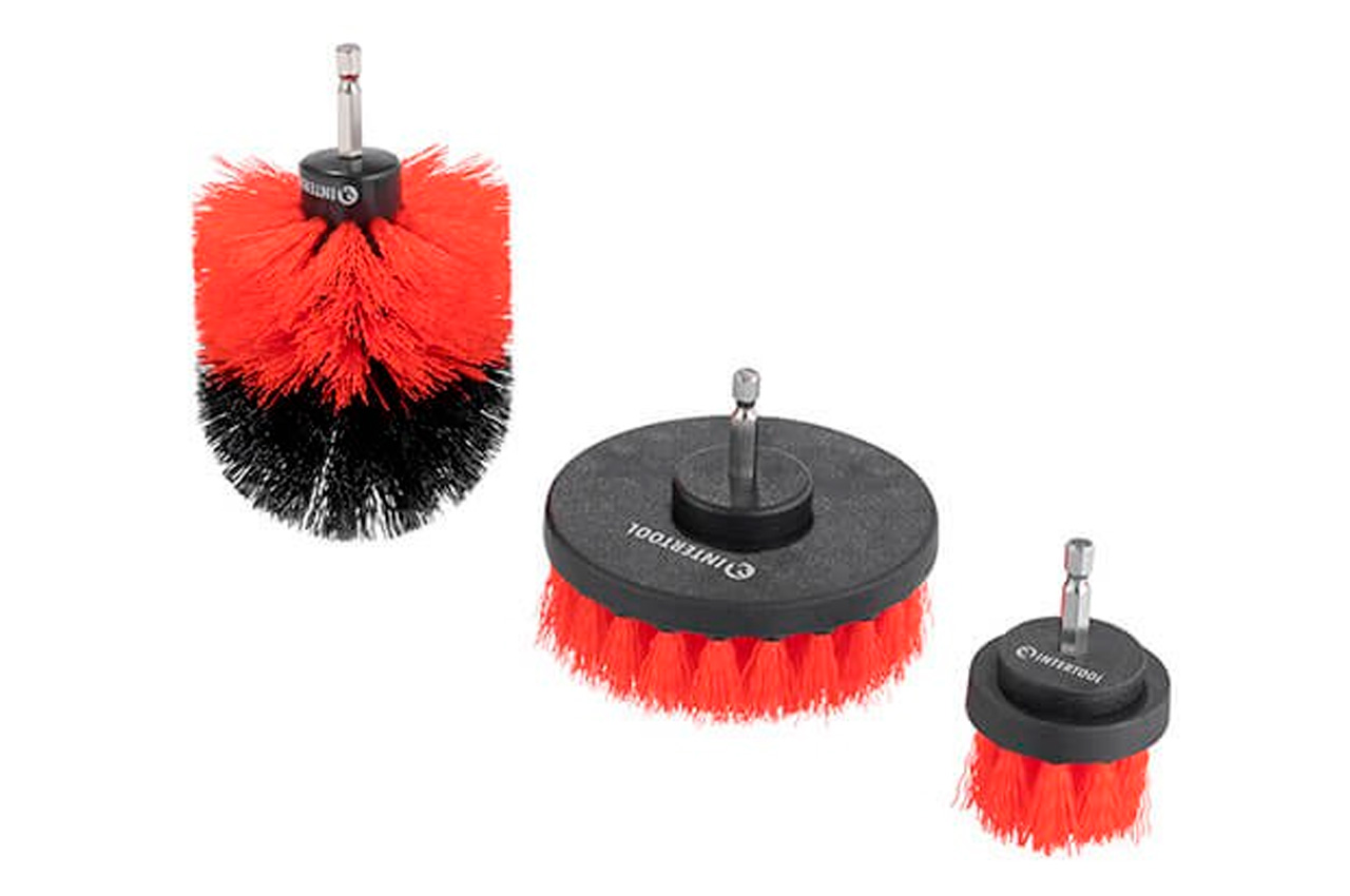 Набір щіток різної форми призначений для роботи разом з дрилем або шуруповертом. За допомогою цих універсальних щіток ви зможете очистити найбільш забруднені ділянки на будь-яких поверхнях: металевих, дерев'яних, пластикових. Підходять для чищення плитки, ванни, меблів, килимів, коліс, скла, а також для очищення від старої фарби та ін. Комплектація Велика пряма щітка діаметром 102 мм Мала пряма щітка, діаметром 51 мм Кругла щітка, діаметром 83 мм