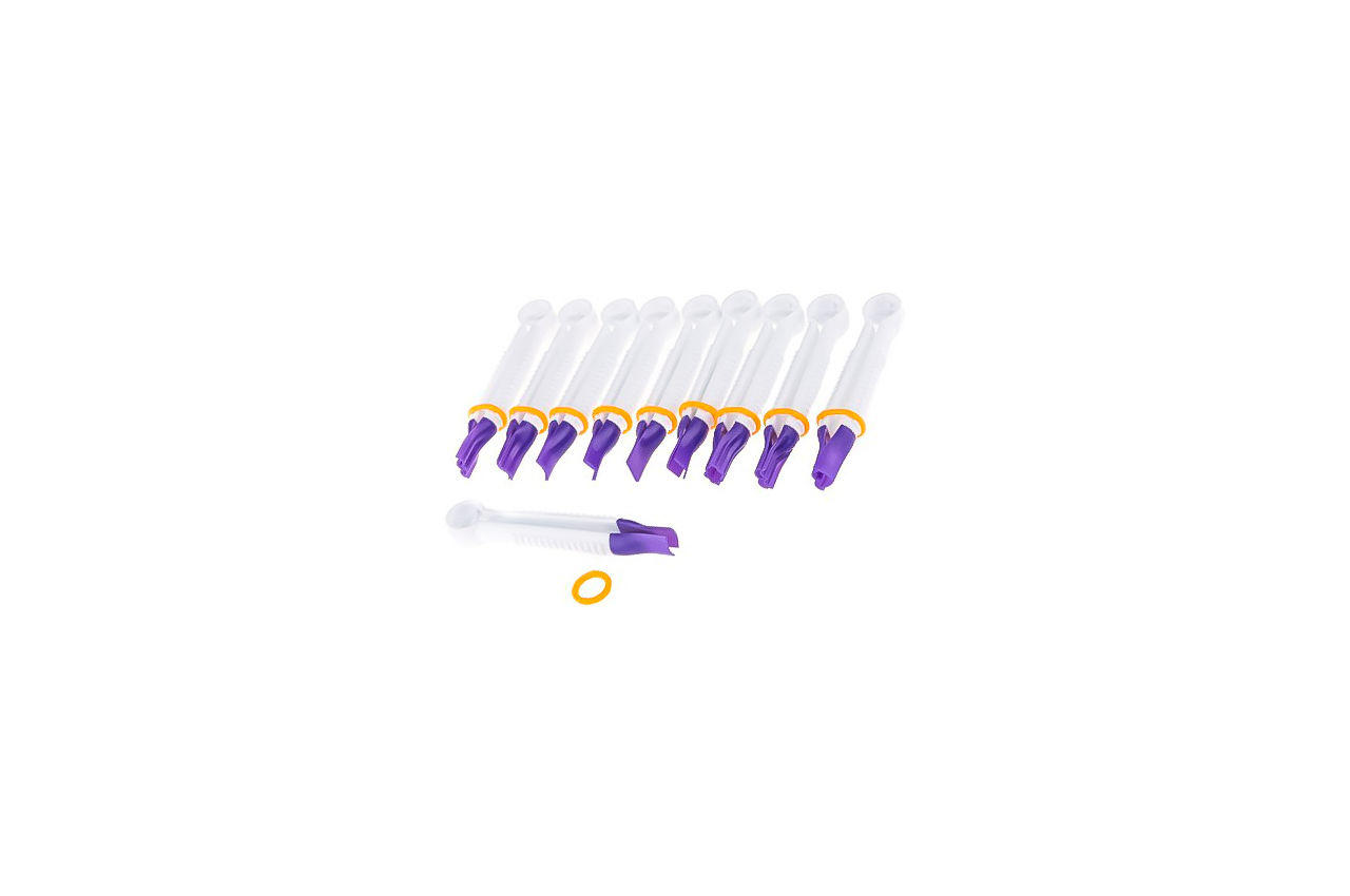 Набір щипців для декорування складається з 10 пластикових кондитерських інструментів з фігурним зубчастим краєм. Щипці призначені для нанесення красивого рельєфного малюнка на боки або кути торта. Це мало не єдиний інструмент серед кондитерського інвентарю, який неможливо замінити ніякими підручними засобами, а зробити вручну подібний дизайн торта без спеціальних щипців просто неможливо. Застосовуються щипці в роботі з мастикою, марципаном і тестом.