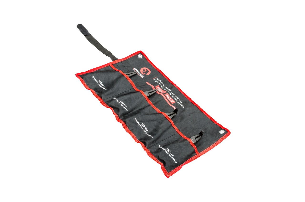 Набір щипців для стопорних кілець - необхідний помічник під час ремонту авто, мото техніки та ін. Це корисний інструмент на СТО, в майстерні і в будь-якому гаражі. Набір прямих і вигнутих знімачів стопорних кілець - незамінні інструменти, коли необхідна акуратна і швидка установка або зняття стопорних кілець. Виготовлені з міцної 40CrV стали, методом кування. Відрізняються підвищеною зносостійкістю і витримують значні навантаження, в умовах тривалого застосування. Фосфатированной покриття захищає від зносу, тим самим щипці менше піддаються механічним пошкодженням і захищені від корозії. Прецизійні, точні наконечники щипців мають спеціальну форму, що запобігає зрив і деформацію стопорного кільця. Вони пройшли спеціальну термічну обробку для досягнення високої твердості. Ручки щипців з антиковзаючим покриттям, гарантують комфорт майстра під час роботи. Поставляються в міцному чохлі з люверсами для підвішування на стіну. Особливості 4 популярних розміру щипців для зовнішніх і внутрішніх стопорних кілець фосфатированной, точні наконечники Зручна нековзна ручка Чохол з міцного поліестеру зі стрічкою на липучці, для компактного зберігання або транспортування Особливості: фосфатовані