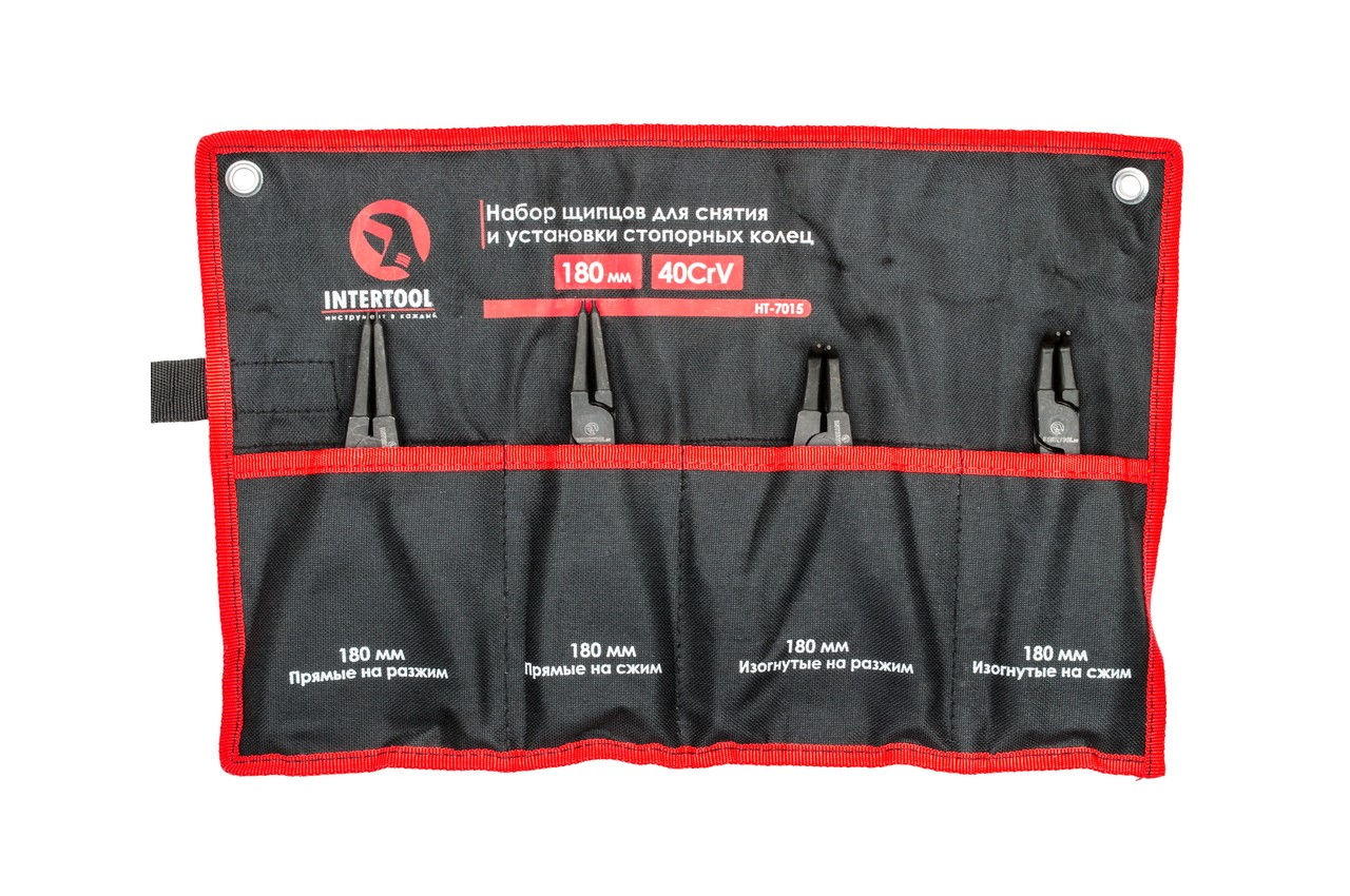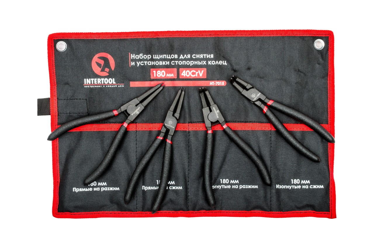 Набір щипців для стопорних кілець Intertool - 180 мм фосфат (4 шт.)
