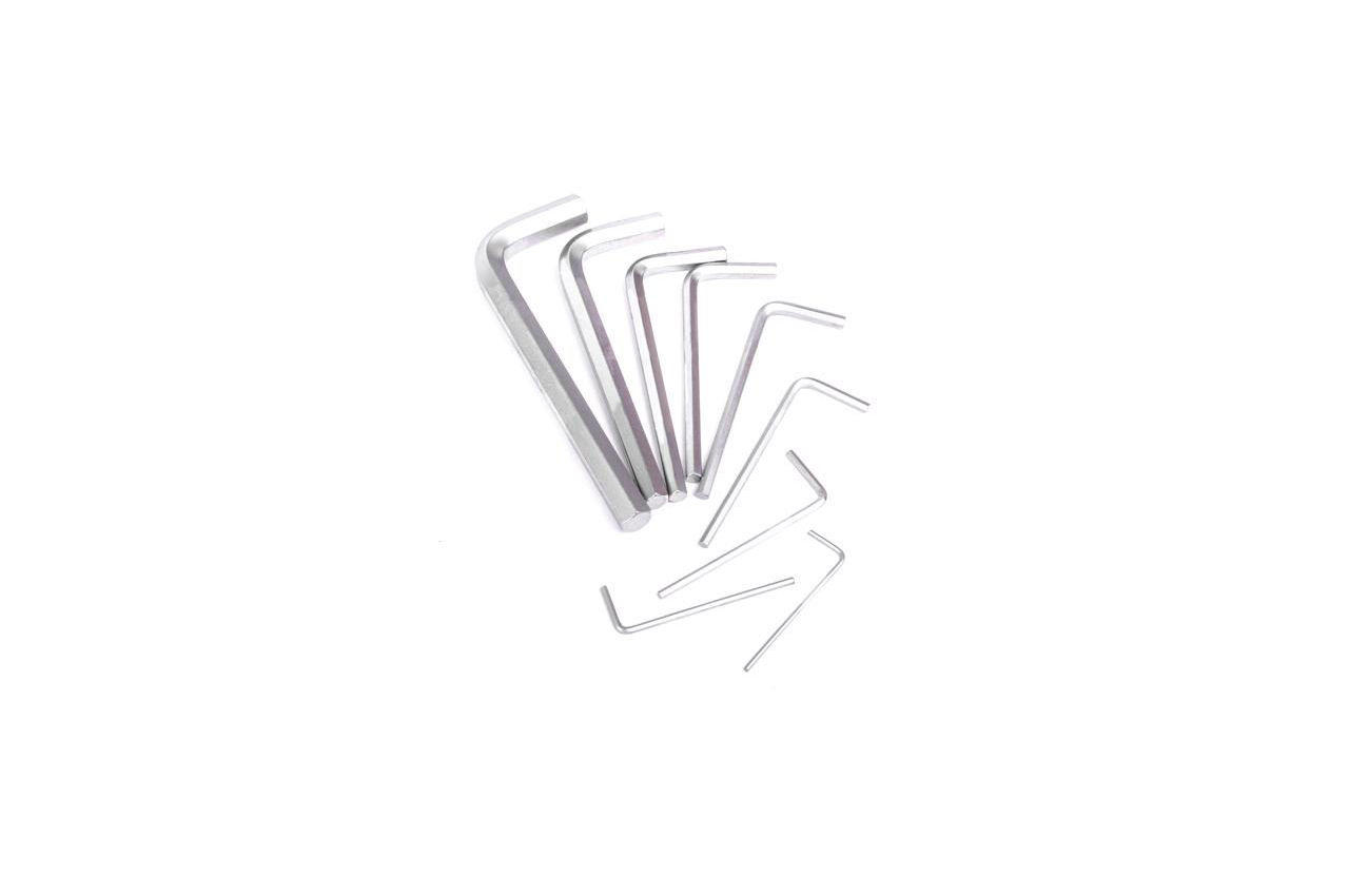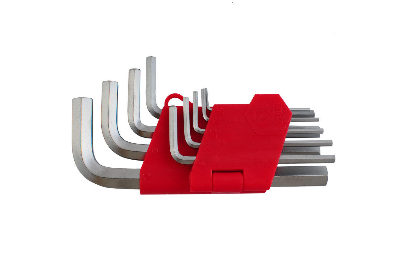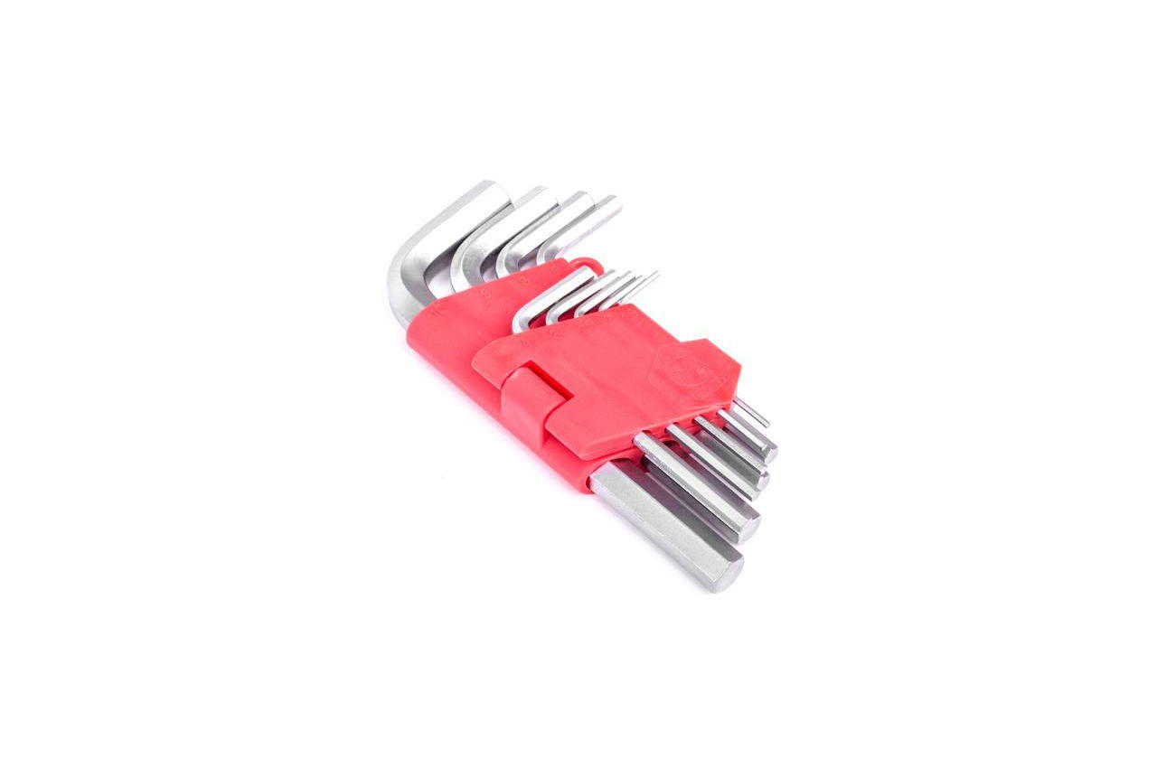 Набір Г-образних шестигранних ключів HT-0601 застосовується для загвинчування болтів з шліцом шестигранної форми. Перевагою ключів даної форми є можливість не виймати ключ з болта при повному обороті. Литі ключі з хром-ванадієвої сталі мають високі експлуатаційні характеристики і захищені від корозії. Матове покриття дозволяє підтримувати охайний зовнішній вигляд інструменту набагато довше, ніж глянцевий. Ключі поміщені в спеціальний утримувач, який забезпечує зручність зберігання. Особливості Матове покриття, Захист від корозії, Литі, Поставляються в спеціальному утримувачі. Типи ключів: Г-образні шестигранні; Кількість ключів: 9 од .; Розміри ключів: 1.5-10 мм; Твердість за шкалою Роквелла: 52-55 HRC