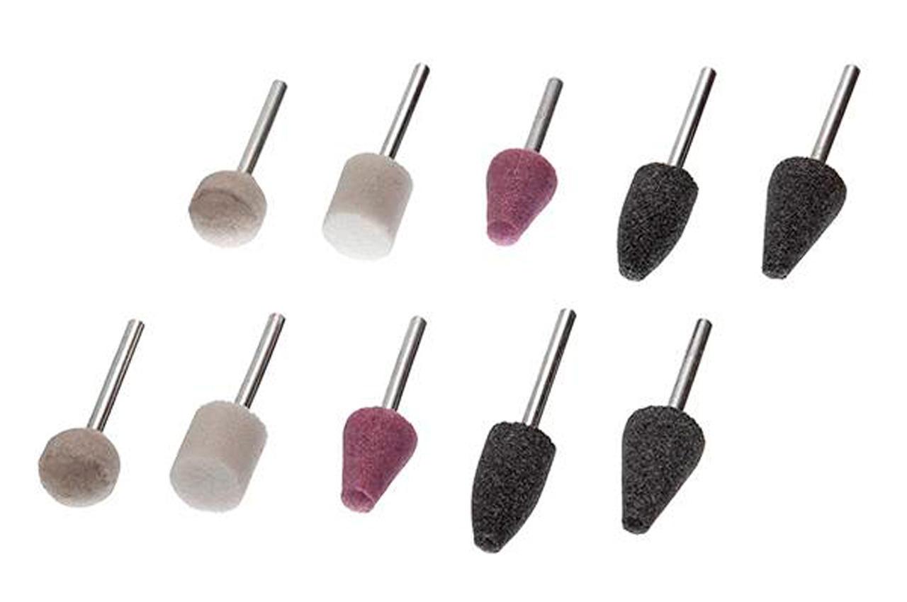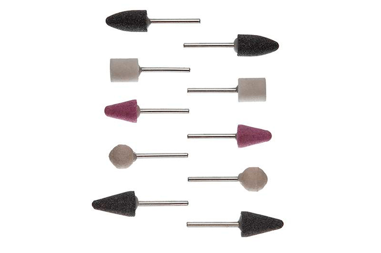 Набір шліфувальних каменів в кількості 10 шт. (По 2 шт. Кожного виду) застосовується для ручних слюсарних робіт по внутрішньому шліфуванню, зняттю задирок і зачистки фасонних поверхонь, де не можуть бути застосовані шліфувальні круги. Область робіт: метал, дерево, граніт. Діаметр стрижня 3 мм Кількість: 10 шт; Діаметр стрижня: 3 мм