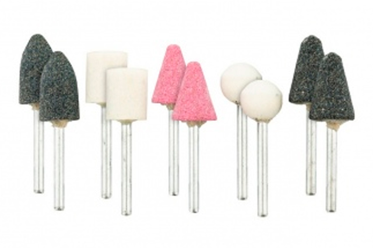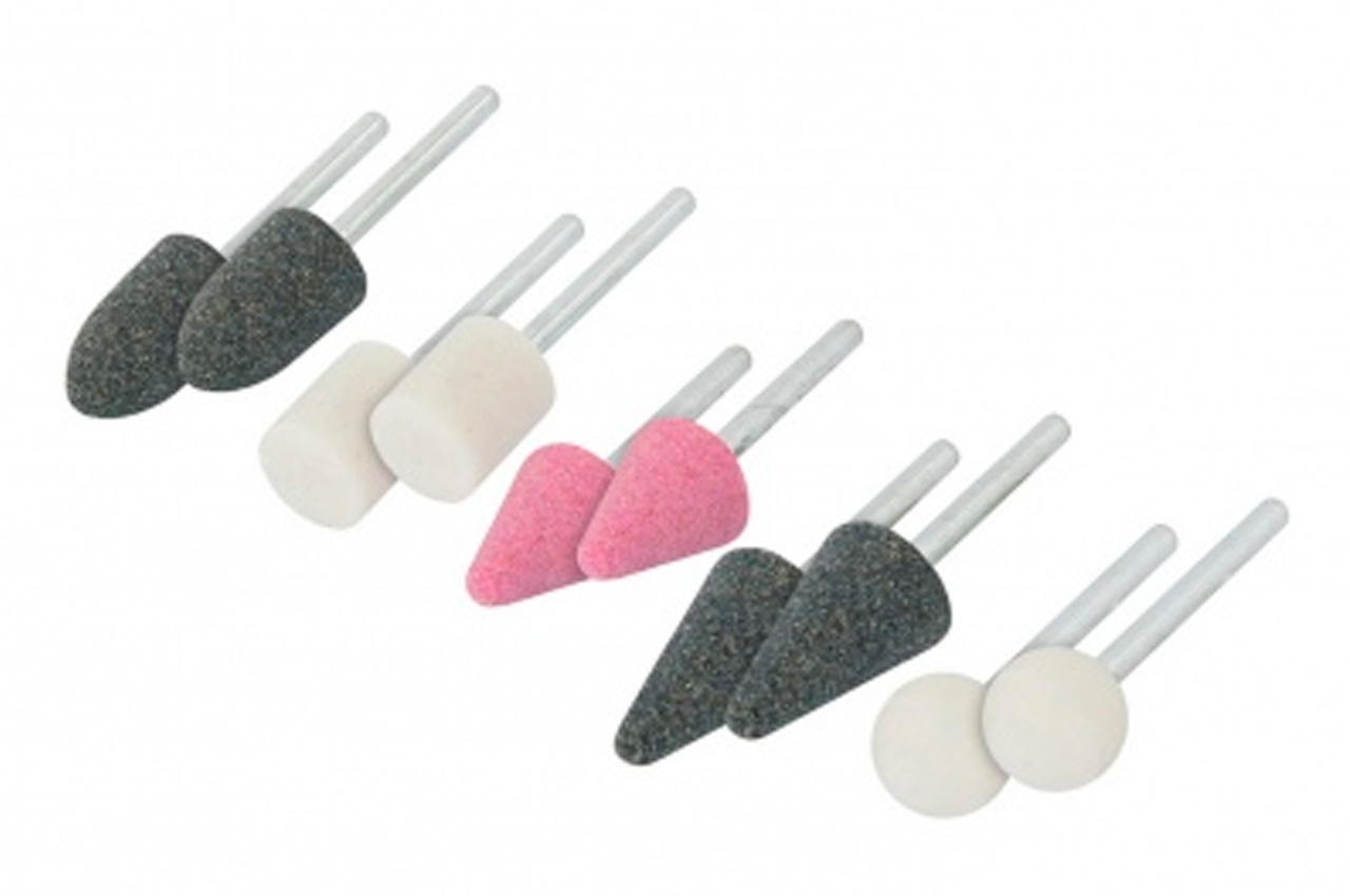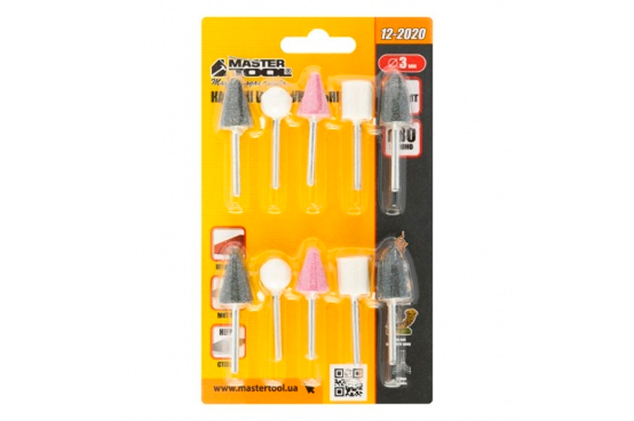 Набір шліфувальних каменів "Mastertool" в кількості 10 шт. (По 2 шт. Кожного виду) застосовується для ручних слюсарних робіт по внутрішньому шліфуванню, зняттю задирок і зачистки фасонних поверхонь, де не можуть бути застосовані шліфувальні круги. Область робіт: метал, дерево, граніт. Діаметр стрижня 3 мм