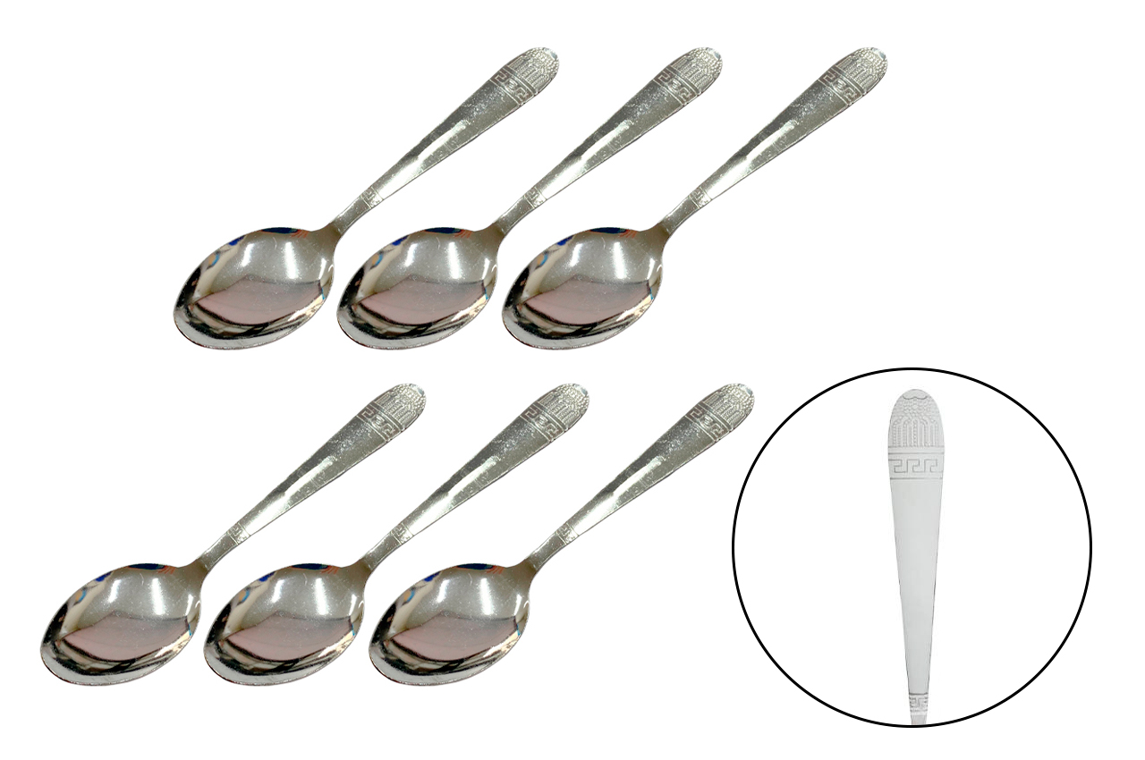 Набір сріблястих чайних ложок з візерунком "Грецький меандр" (6шт)