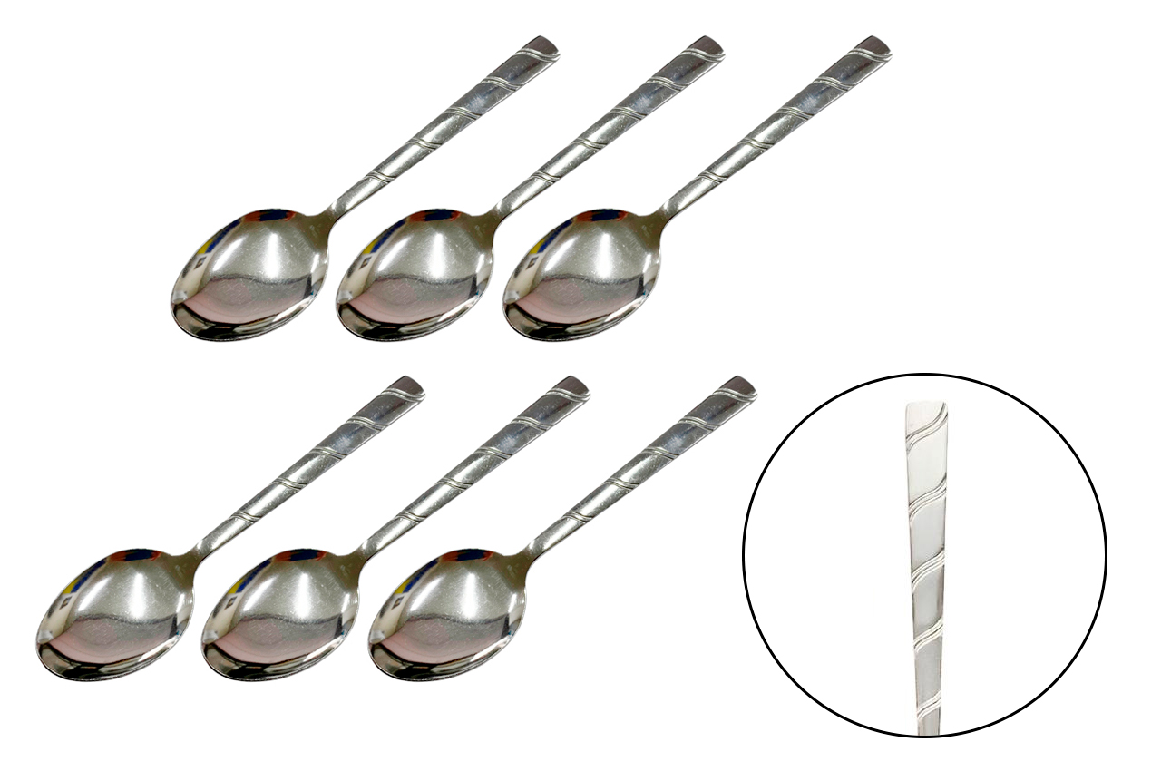 Набір сріблястих столових ложок з візерунком "Хвиля" (6шт)