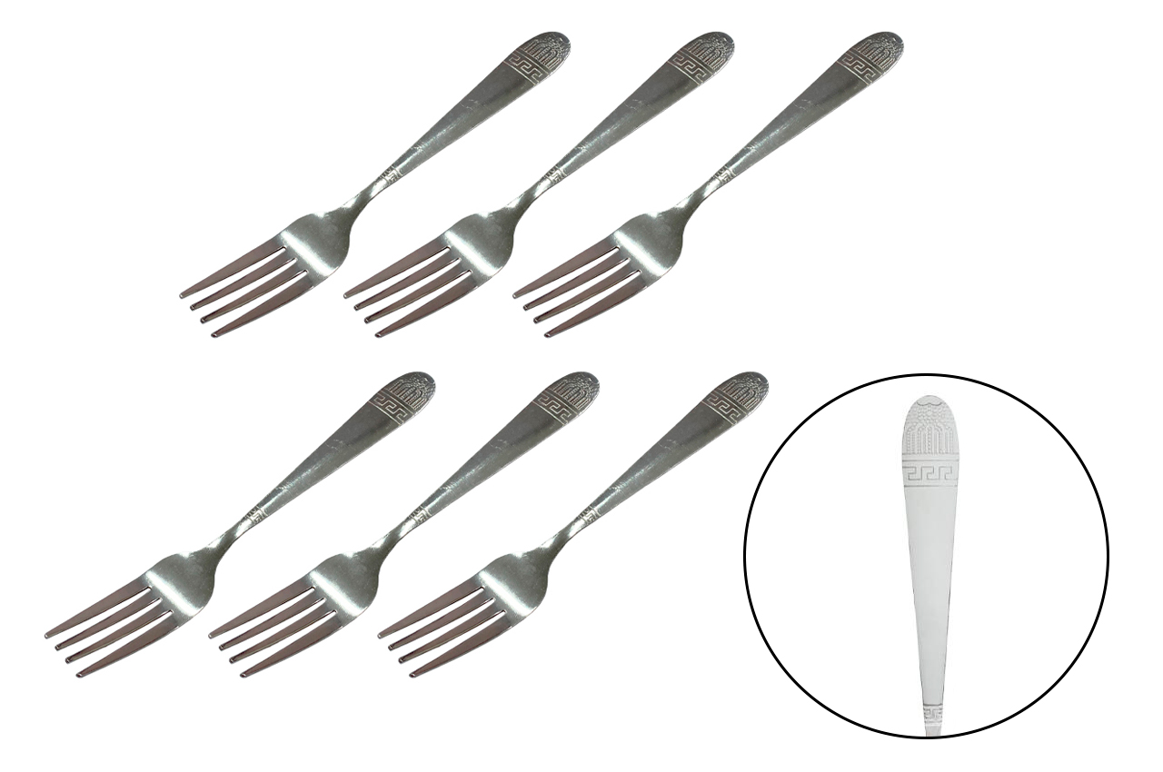 Набір сріблястих столових виделок з візерунком "Грецький меандр" (6шт)