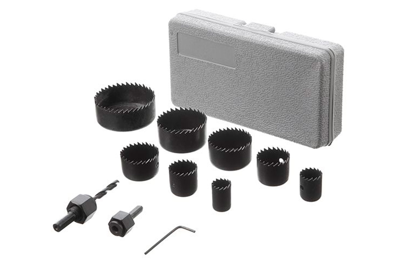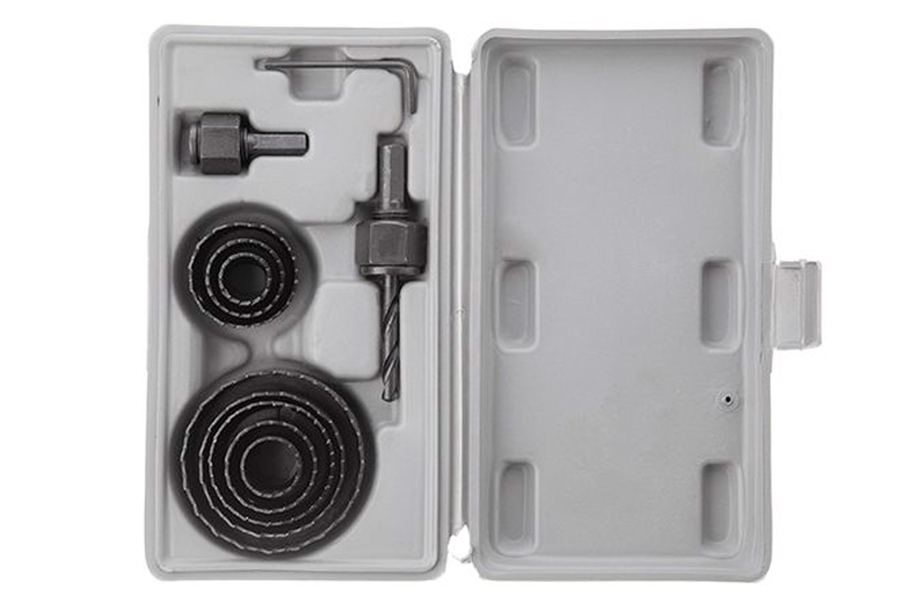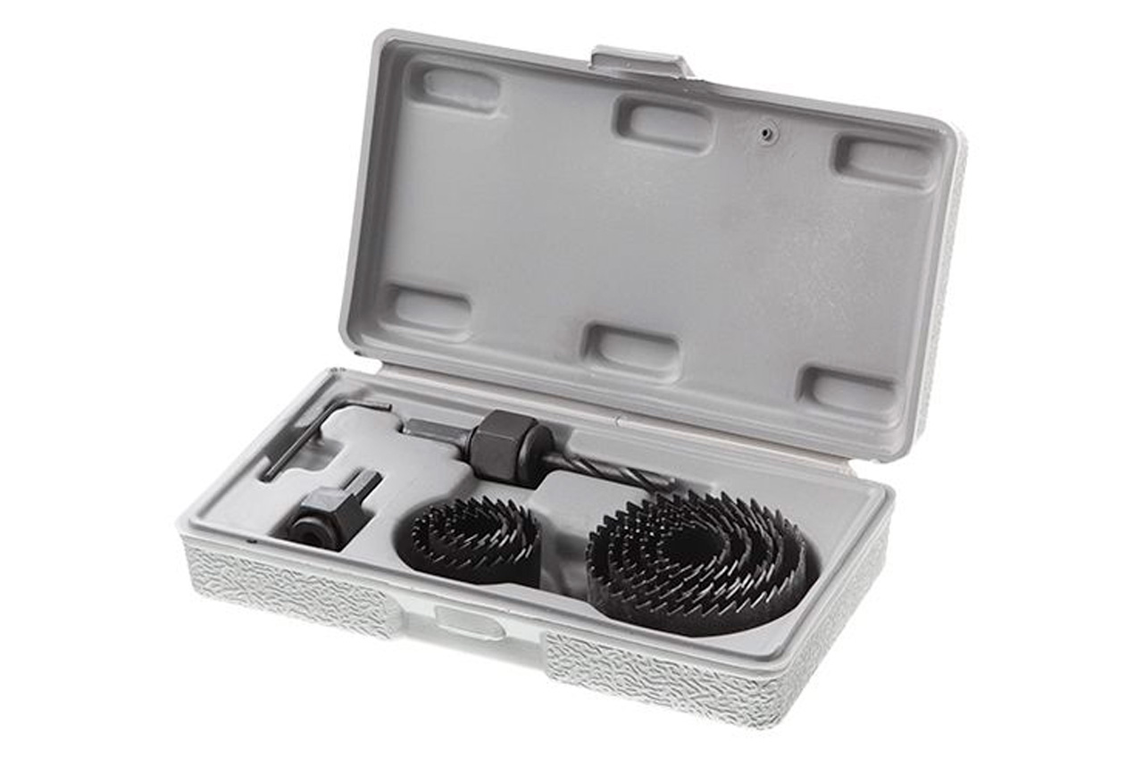 Набір корончастих свердел 19-64 мм BT-0023 призначений для роботи з дрилем і вертикальним свердлильним верстатом. Корончаті свердла мають стабільну конструкцію і забезпечують високу стійкість при обертанні, дозволяючи робити хід більш спокійним, а значить, і полегшити силове навантаження майстра. Зубці даного типу фрез забезпечують чіткий і рівний розріз матеріалу. У набір входить 8 типорозмірів корончастих свердел, два перехідника і центрирующее свердло. Сфера застосування: м'які породи дерева, пластик. Діаметр свердла: 19, 22, 29, 32, 38, 44, 51, 64 мм; Кількість в наборі: 11 од .; Застосування: для пластику і дерева