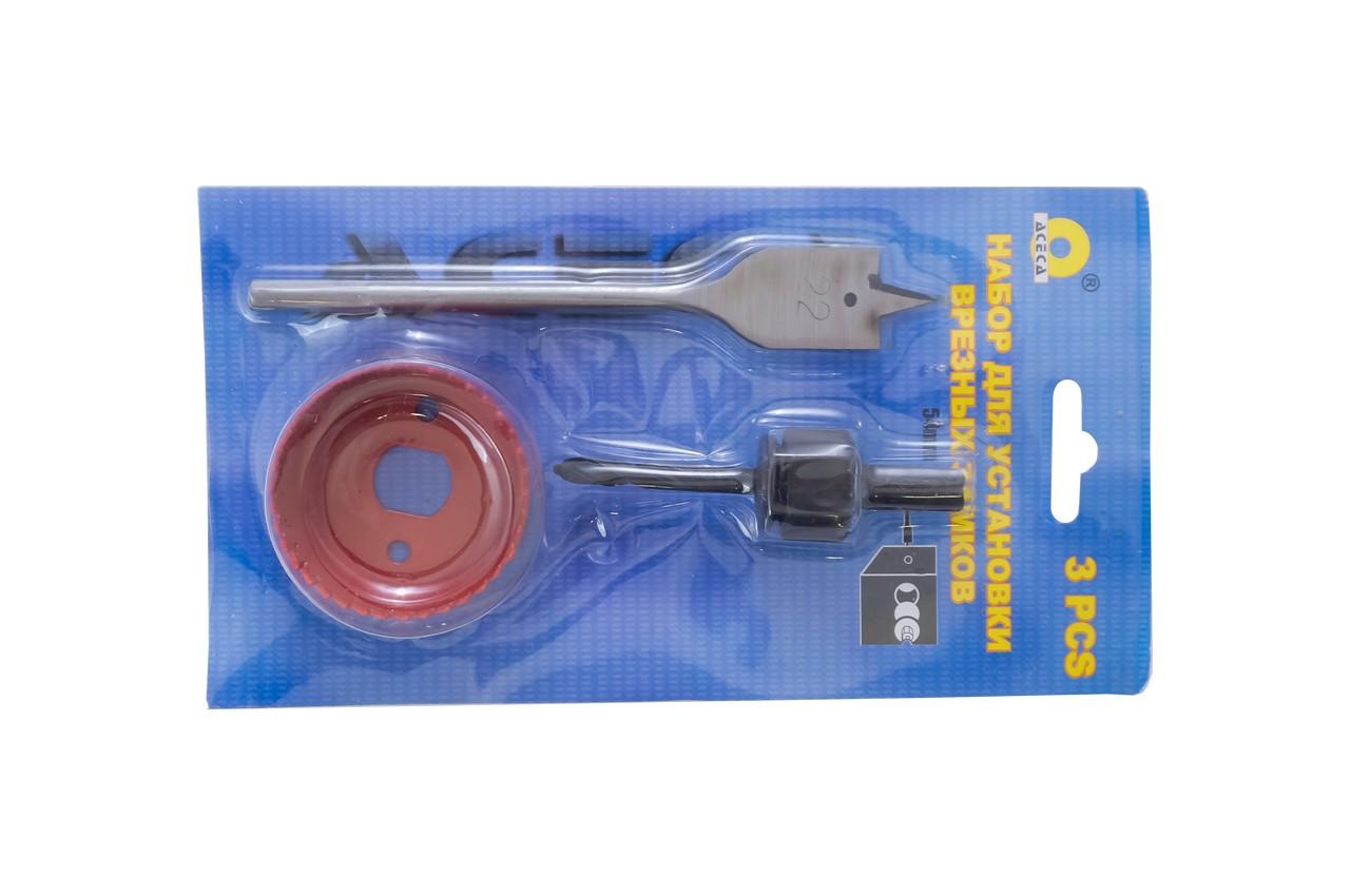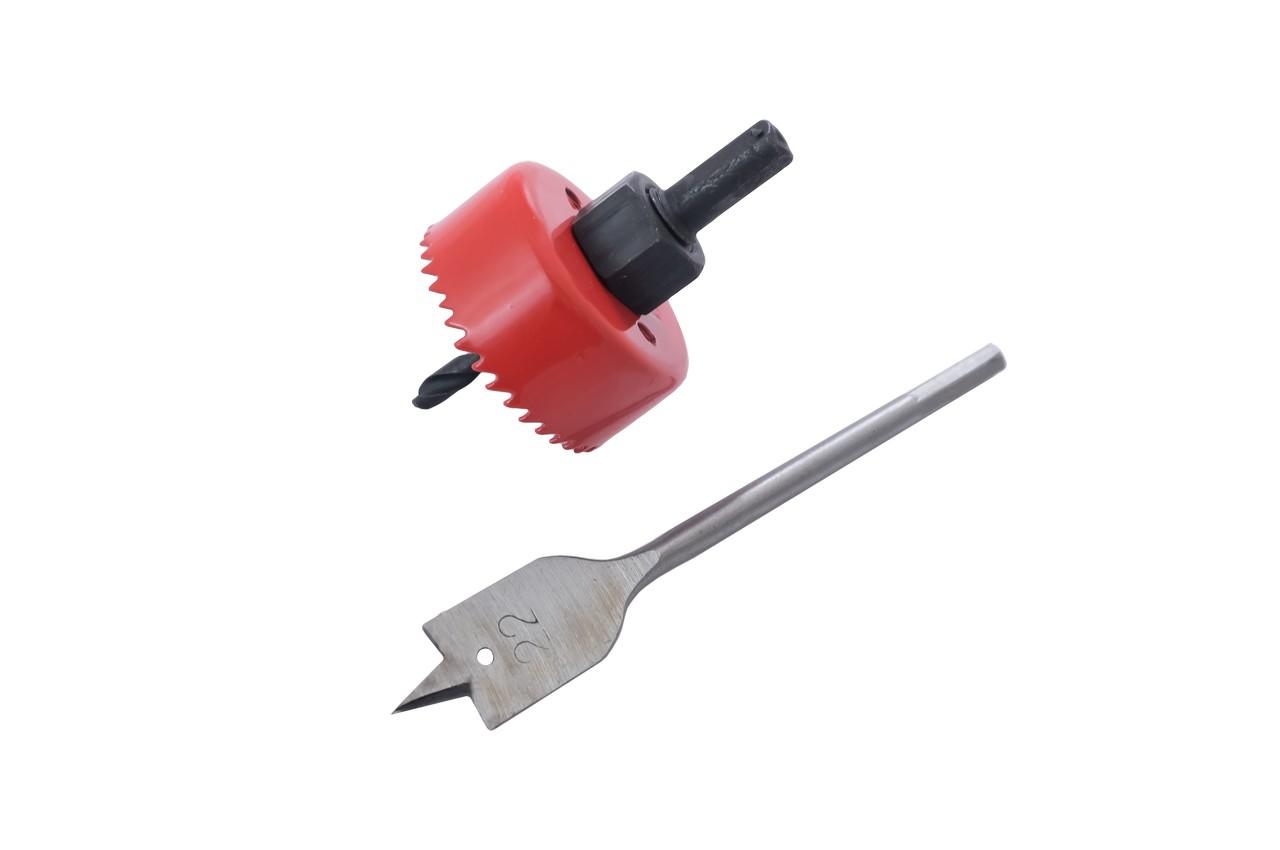 Застосовується для установки замків. Комплектація: фреза кільцева 54 мм, свердло направляє 6 мм, свердло пір'яне 22 м.