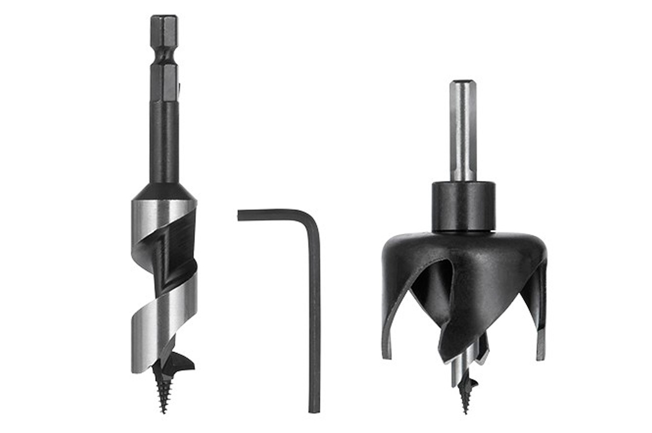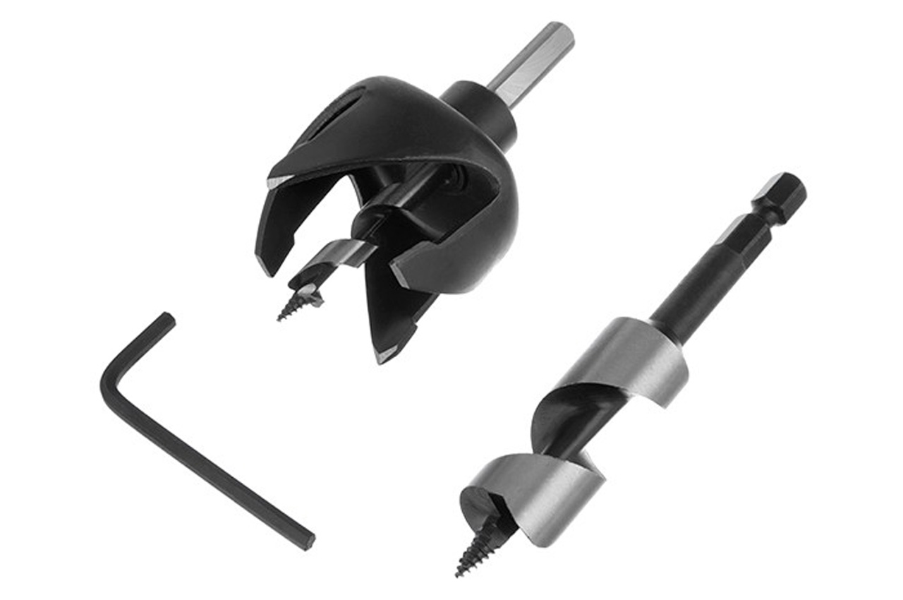 Набір свердел по дереву для установки замків "Intertool" (2 од.). У набір входять: свердло корончате 54 мм, свердло спіральне 22 мм, шестигранник 4 мм) Комплектація: Свердел корончате 54 мм, свердло спіральне 22 мм, шестигранник 4 мм; Застосування: дерево; Кількість в наборі: 2 од.