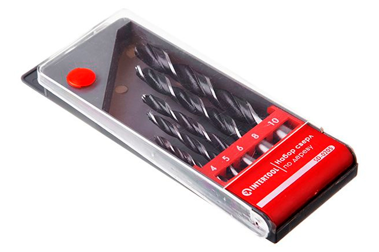 Набір свердел по дереву Intertool - 5 шт. (4, 5, 6, 8, 10 мм). Кількість у наборі: 5 од.; Діаметр свердла: 4; 5; 6; 8; 10 мм; Довжина свердлу: 75; 80; 90; 103; 117 мм