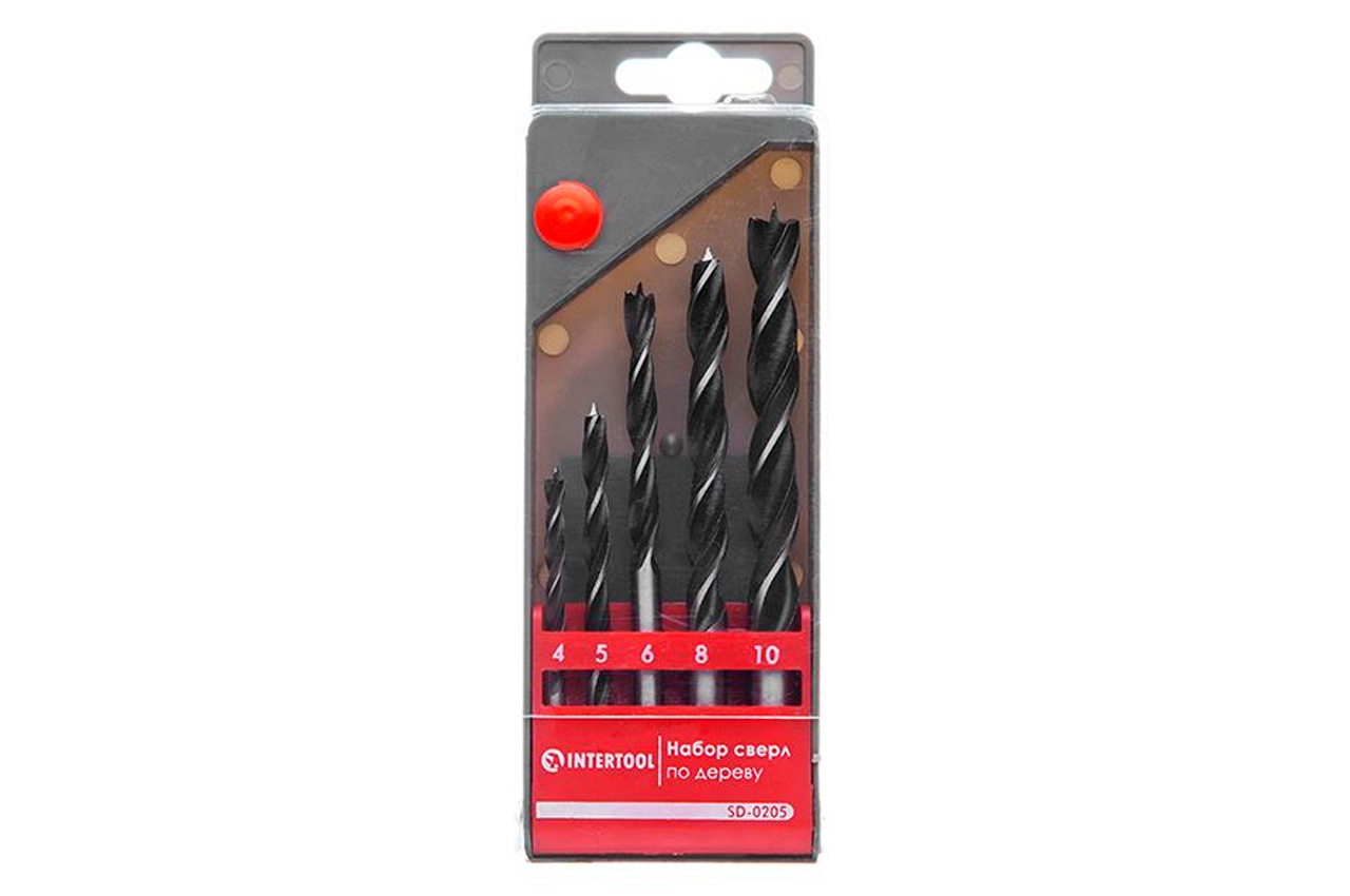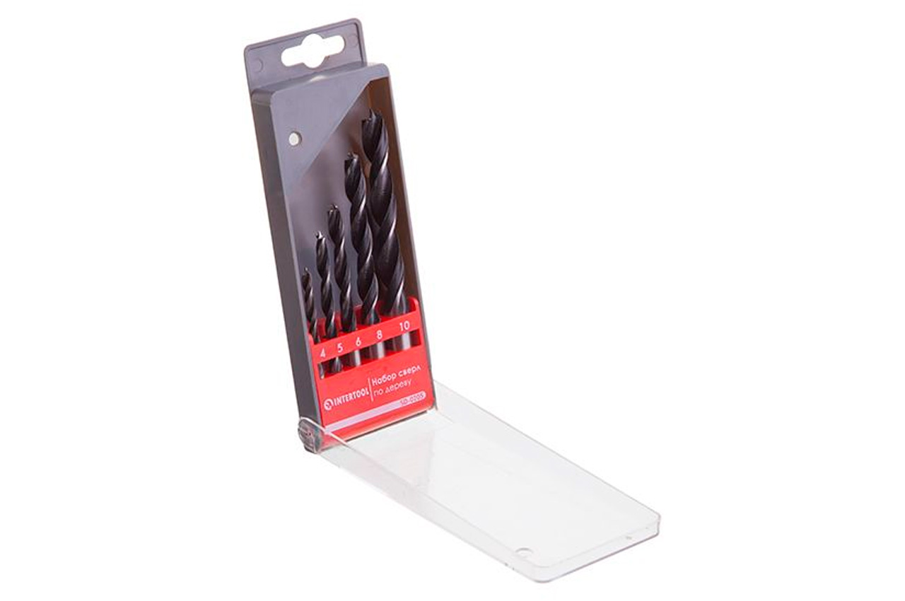 Набір свердел по дереву Intertool - 5 шт. (4, 5, 6, 8, 10 мм)
