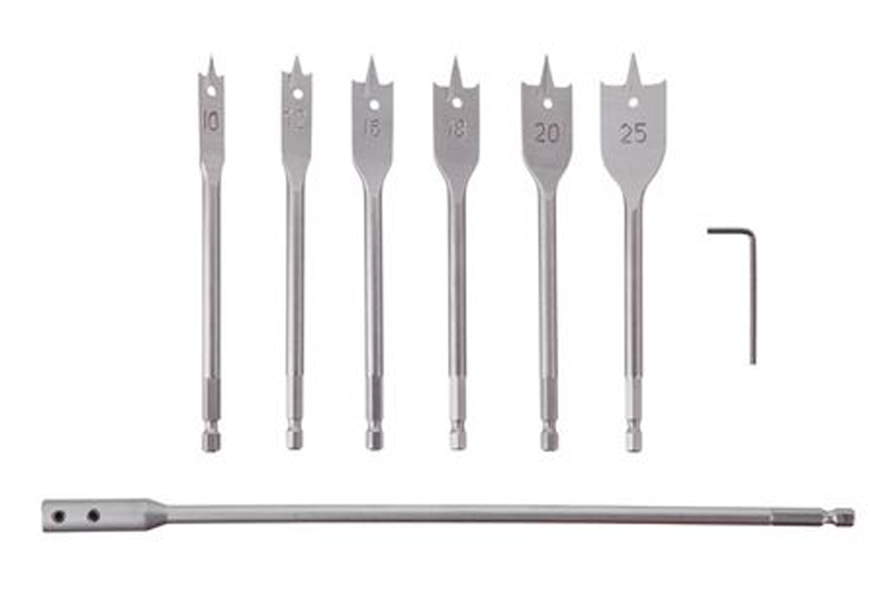 Набір свердел по дереву пір'яних Intertool - 10-25мм з подовжувачем HEX (6шт)