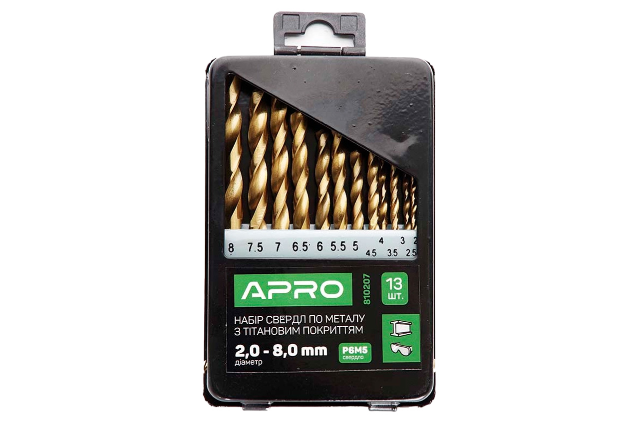 Набір свердел по металу Apro - 13 шт. (2-8 мм) титан
