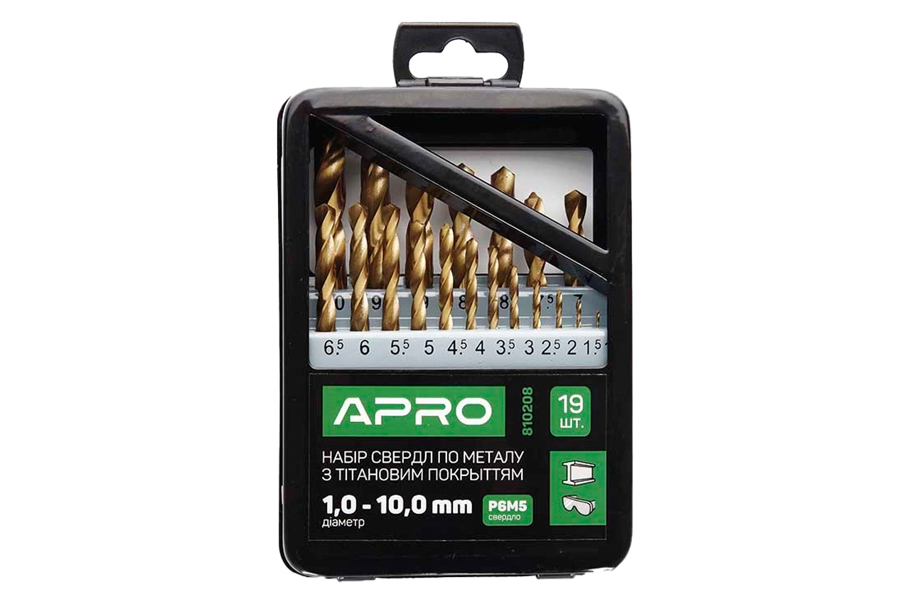 Набір свердел по металу Apro - 19 шт. (1-10 мм) титан