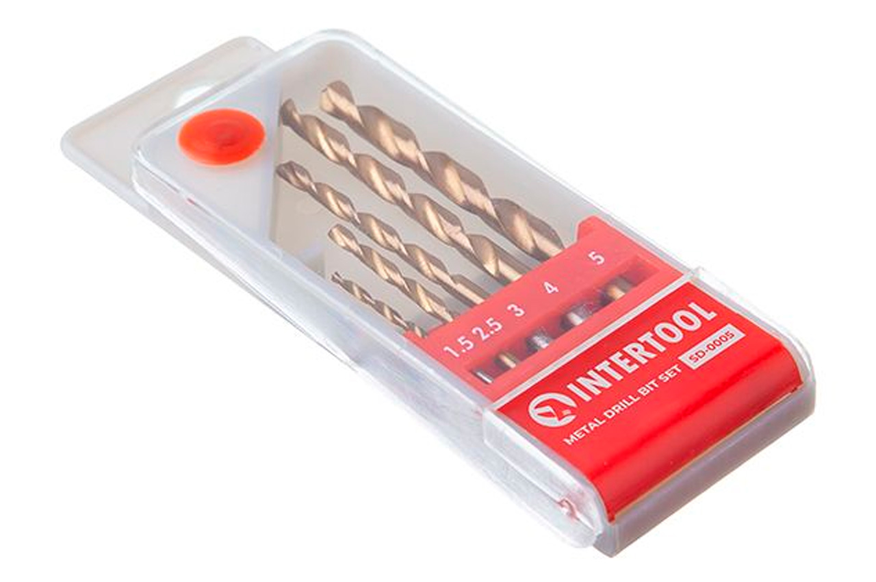 Набір свердел по металу Intertool - 5 шт. (1,5-5 мм) титан