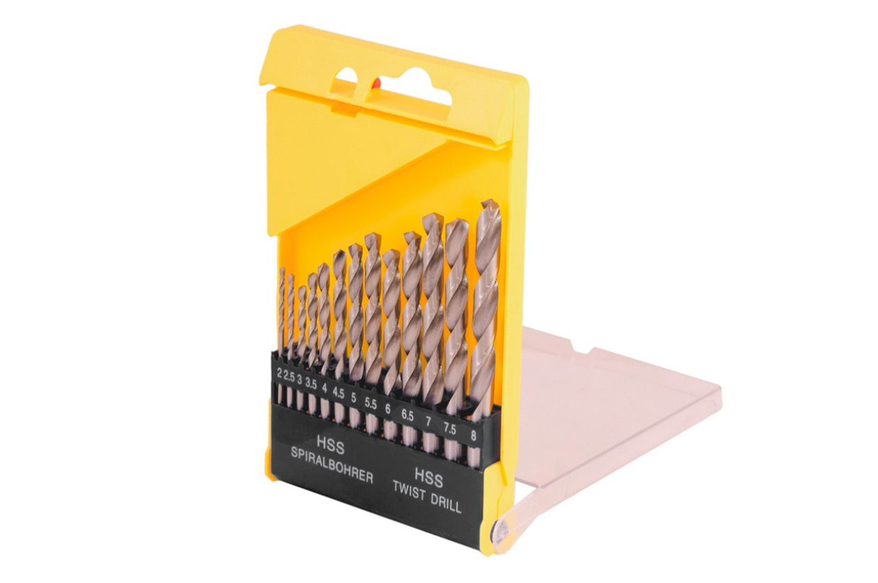 Призначені для просвердлювання отворів різних діаметрів в листовому металі. Що входять до складу наборів спеціальні свердла виготовляються з швидкорізальної сталі. Кут заточування 118 ˚. Діаметр 2.0 / 2.5 / 3.0 / 3.5 / 4.0 / 4.5 / 5.0 / 5.5 / 6.0 / 6.5 / 7.0 / 7.5 / 8.0 мм