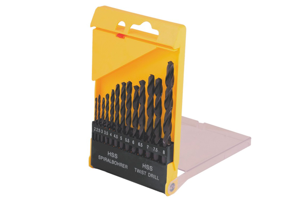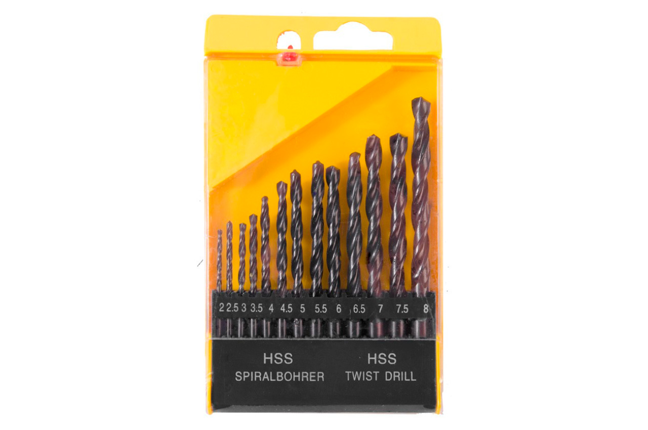 Призначені для просвердлювання отворів різних діаметрів в листовому металі. Що входять до складу наборів спеціальні свердла виготовляються з швидкорізальної сталі. Кут заточки 118˚; Діаметр свердл 2.0 / 2.5 / 3.0 / 3.5 / 4.0 / 4.5 / 5.0 / 5.5 / 6.0 / 6.5 / 7.0 / 7.5 / 8.0 мм