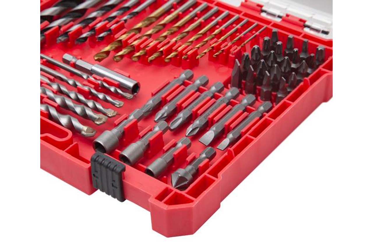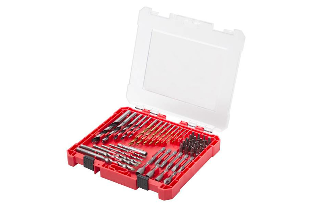 Універсальний набір містить різні види свердел для роботи з каменем, бетоном, пластиком, металом, деревом, також містить біти, зенківку та магнітний тримач. Набір містить: - Свердла по металу, виготовлені з якісної HSS сталі з твердістю 60-63 HRC - Свердла по дереву, каменю, а також зенківка та магнітний тримач виготовлені з універсальної сталі C45 - Викруткові біти та торцеві насадки виготовляються зі зносостійкої та довговічної Cr-V сталі. Свердла та насадки розміщені у зручному та міцному пластиковому кейсі з замками.