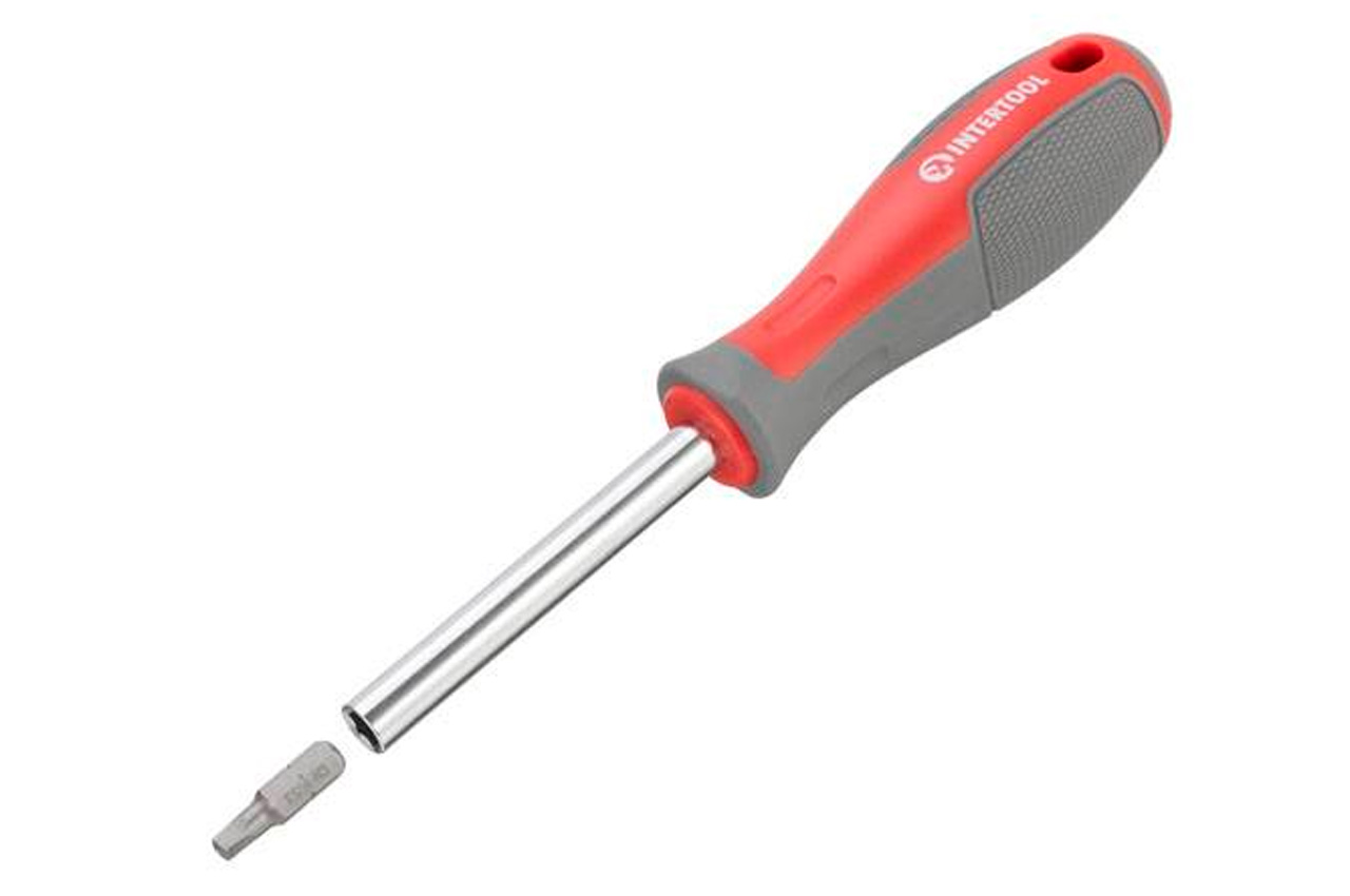Набір викруток і насадок INTERTOOL виготовлений за останніми технологіями та відповідає високим вимогам майстрів. Призначений для монтажу і демонтажу різьбових з'єднань з різноманітними типами шліців. Даний комплект стане відмінним помічником в домашньому арсеналі інструменту, а також у власній майстерні, на виробництві. Всі насадки і викрутки виготовлені з міцної Cr-V сталі, яка відома всім майстрам своєю надійністю і витривалістю. Комплектація Викрутки: SL8*150 мм, SL6*125 мм, SL5*100 мм, SL5*75 мм, SL6*38 мм, PH2*125 мм, PH1*100 мм, PH1*75 мм, PH2*38 мм, S2*38 мм, S1*38 мм; Викрутка під біти; Прецизійні викрутки: SL2.5*40 мм, SL3*40 мм, PH00*40 мм, PH0*40 мм, T8*40 мм, T9*40 мм, T10*40 мм. Біти: SL3, SL4х2, SL5х2, SL6х2, SL7х2, PH0, PH1х2, PH2х2, PH3х2, PZ0, PZ1х2, PZ2х2, PZ3х2, T10, T15х2, T20х2, T25х2, T27х2, T30х2, H2, H3х2, H4х2, H5х2, H6х2, H8, S0, S1х2, S2х2, S3х2.