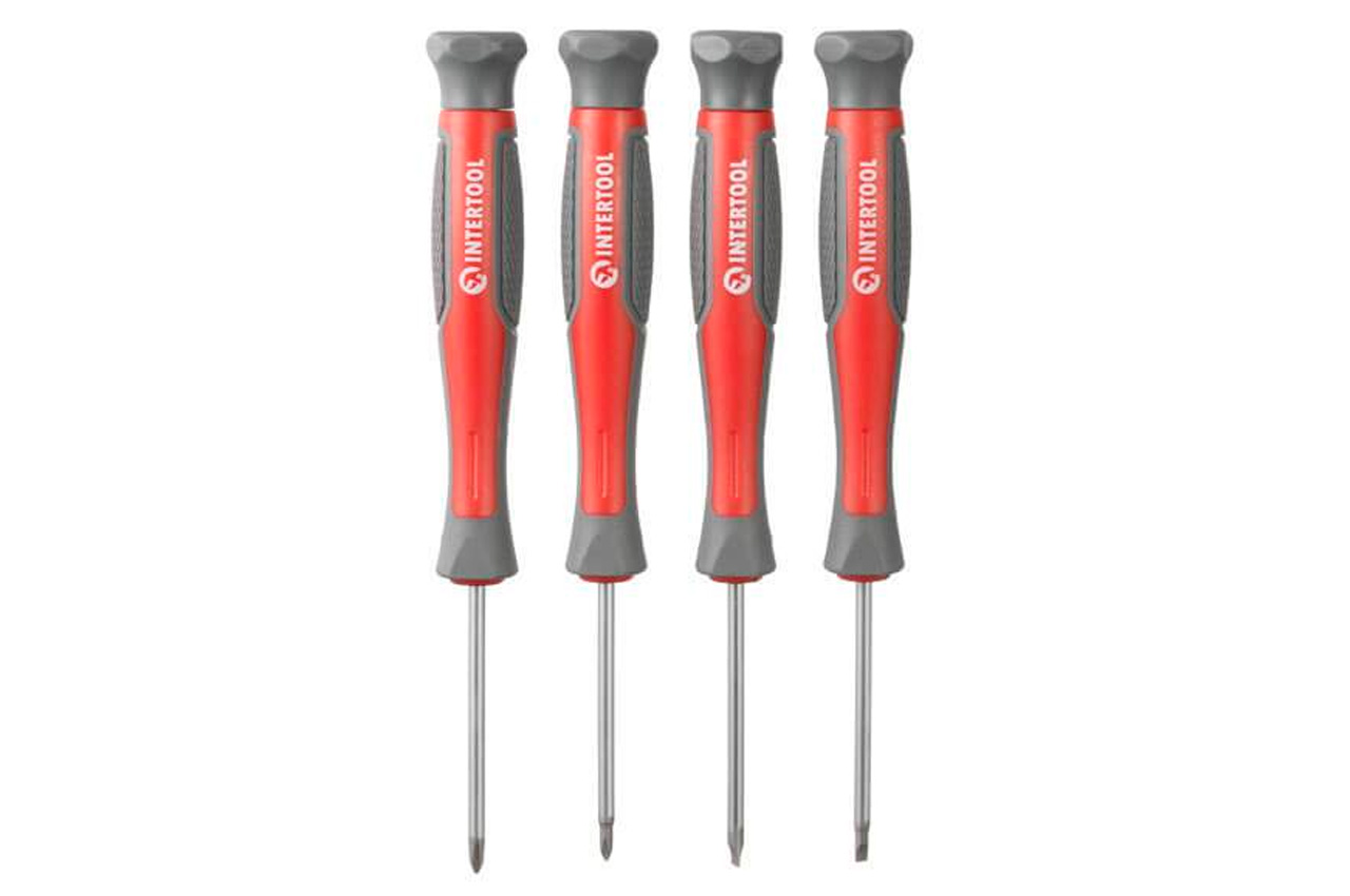 Набір викруток Intertool - PH x SL x T (20 шт.). Всі викрутки виготовлені з міцної Cr-V сталі, яка відома всім майстрам своєю надійністю і витривалістю. До складу цієї сталі входять хром і ванадій, які надають їй високу стійкість до зносу. Також сталь вирізняється довговічністю і не схильна до крихкого руйнування. Форма ручок викруток забезпечує максимальну ефективність від прикладеного зусилля. Прогумована двокомпонентна рукоятка зручно лежить в руці і не вислизає з долоні. Викрутки: SL8*150 мм, SL6*150 мм, SL6*100 мм, SL4*100 мм, SL5*75 мм, SL3*75 мм, SL6*38 мм PH2*150 мм, PH2*100 мм, PH1*75 мм, PH0*75 мм, PH2*38 мм Т25*100 мм, Т20*100 мм, Т15*75 мм, Т10*75 мм. Прецизійні викрутки: SL2.5*50 мм, SL2*50 мм, PH0*50 мм, PH00*50 мм.