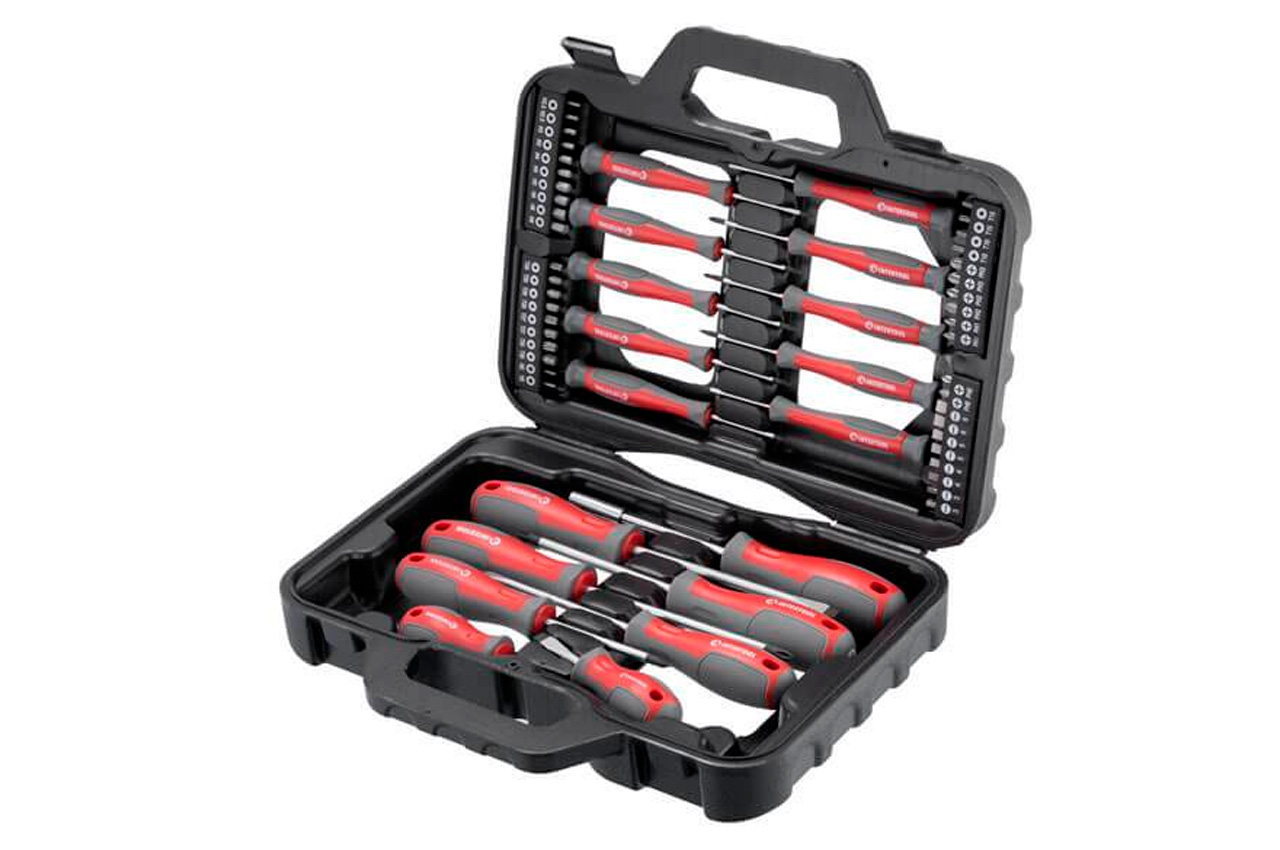 Набір викруток INTERTOOL VT-3358 виготовлений за новітніми технологіями і відповідає високим вимогам майстрів. Призначений для монтажу і демонтажу різноманітних різьбових з'єднань завдяки розширеній комплектації викруток і біт. Комплект стане відмінним помічником в домашньому арсеналі інструменту, а також у власній майстерні, на виробництві. Комплектація Викрутки: SL6*38 мм, SL5*100 мм, SL6*125 мм, PH2*125 мм, PH2*100 мм, PH1*75 мм, PH2*38 мм; Прецизійні викрутки: SL2.5*50 мм, SL2*50 мм, PH0*50 мм, PH00*50 мм, T5*50 мм, T6*50 мм, T7*50 мм, T8*50 мм, T9*50 мм, T10*50 мм; Викрутка під біти; Біти: SL3х2, SL4х2, SL5х2, SL6х2, PH0х2, PH1х2, PH3х2, T10х2, T15х2, T20х2, T25х2, T27х2, T30х2, Н2х2, Н2.5х2, Н3х2, Н4х2, Н5х2, Н6х2
