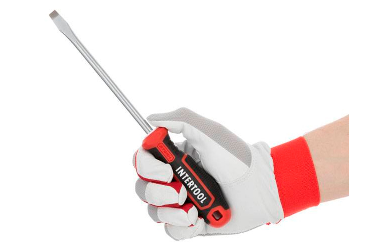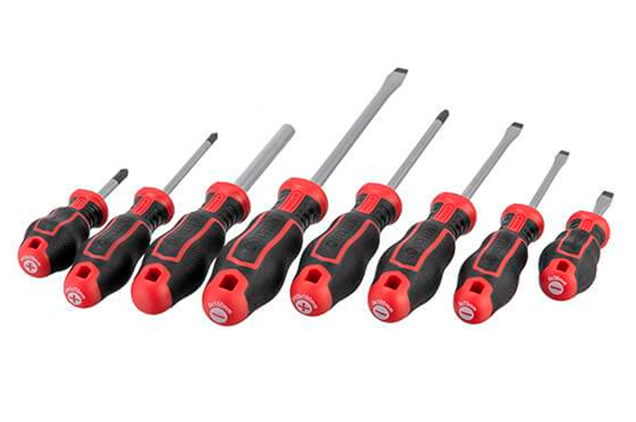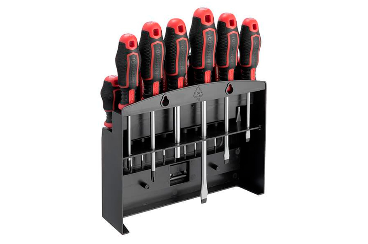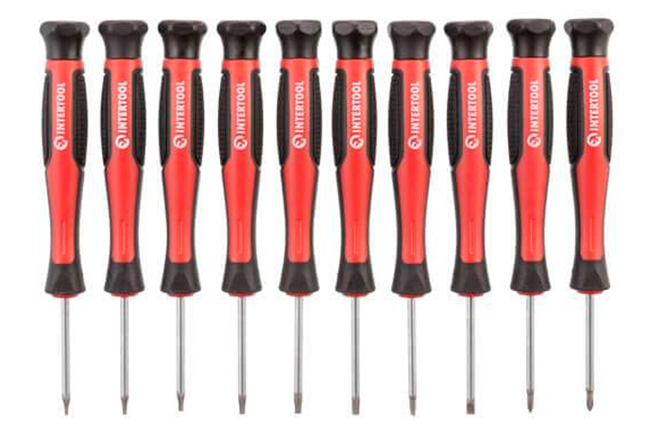 Професійний набір викруток INTERTOOL STORM виготовлений за останніми технологіями і відповідає високим запитам майстрів. Викрутки призначені для інтенсивної роботи на СТО, в майстернях, в точках сервісного обслуговування і в інших галузях, де необхідно проводити постійні роботи з використанням високих навантажень. Також цей набір стане відмінним помічником в домашньому арсеналі інструмента і прослужить Вам довгі роки! Стрижень викрутки виготовлені з надміцної сталі S2, яка вважається найкращою у своєму сегменті. Форма ручок забезпечує максимальну ефективність від докладеного зусилля. Трикомпонентна рукоятка виготовлена з термопластичної гуми (TPR) і гарантує комфорт при роботі навіть вологими чи слизькими руками. Всі викрутки набору розташовані на спеціальній планці-тримачі, яка може кріпитися на стіну завдяки наявності двох викруток на задній кришці. Під кожну біту призначено окремий паз у тримачі з персональним маркуванням, яке дозволить швидко знайти потрібну насадку. Комплектація Викрутки: SL8*150 мм, SL6*100 мм, SL5*75 мм, SL6*38 мм, SL3, SL2, PH2*100 мм, PH1*75 мм, PH2*38 мм Прецизійні викрутки: SL3*50 мм, SL2.5*50 мм, PH0*50 мм, PH00*50 мм, T5*50 мм, T6*50 мм, T7*50 мм, T8*50 мм, T9*50 мм, T10*50 мм Біти: SL4, SL5, SL6, SL7, PH1, PH2х2, PH3х2, PZ1, PZ2х2, PZ3х2, T15, T20, T25, T30