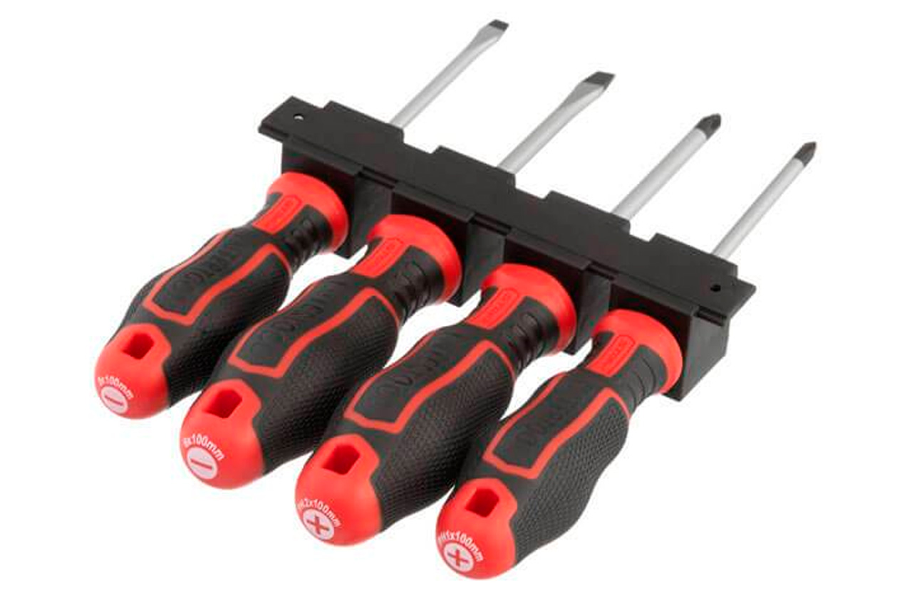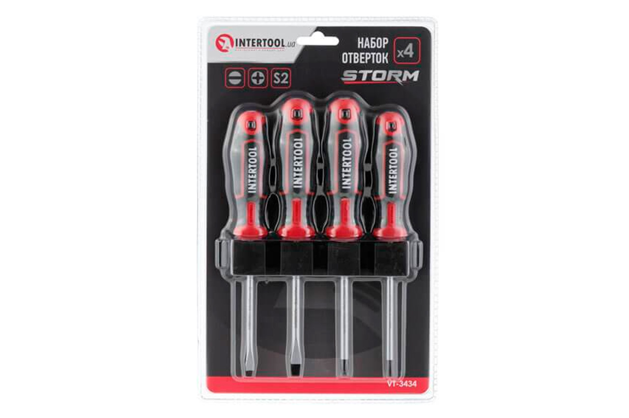 Професійний набір викруток STORM виготовлений за останніми технологіями і відповідає високим запитам майстрів. Викрутки призначені для інтенсивної роботи на СТО, в майстернях, в точках сервісного обслуговування і в інших галузях, де необхідно проводити постійні роботи із застосуванням високих навантажень. Також цей набір стане відмінним помічником в домашньому арсеналі інструменту і прослужить вам довгі роки! Висока якість стали Стрижень викрутки виготовлений з високоміцної сталі S2, яка вважається найкращою в своєму сегменті. У складі цієї стали присутні молібден і кремній, які надають виробу високий опір до навантажень і низький поріг оборотної деформації. Також сталь S2 має високу антикорозійну стійкість. Конструкція викруток продумана до дрібниць Стрижень глибоко посаджений в рукоятку і кріпитися в двох місцях, що виключає можливість зриву. Намагнічений наконечник Викрутки мають високоміцний магнітний наконечник, який дозволяє комфортно встановлювати і демонтувати кріплення. Він стійкий до стирання граней і призначений для проведення робіт з високим навантаженням. Зручна рукоятка Форма ручок забезпечує максимальну ефективність від прикладеного зусилля. Трехкомпонентная рукоятка виготовлена з термопластичної гуми (TRP) і гарантує комфорт при роботі навіть вологими або слизькими руками. Легка, міцна, бензооливостійкі ручка зручно лежить в долоні під час роботи. Яскрава маркування на кінці рукоятки дозволяє швидко знайти необхідний тип і розмір викрутки. Комплектація: Викрутки: SL5 * 100мм, SL6 * 100мм, PH1 * 100мм, PH2 * 100мм Довжина викрутки: 100 мм; Кількість в наборі: 4 од .; Матеріал рукоятки: TPR гума; Матеріал стержня викрутки: сталь S2
