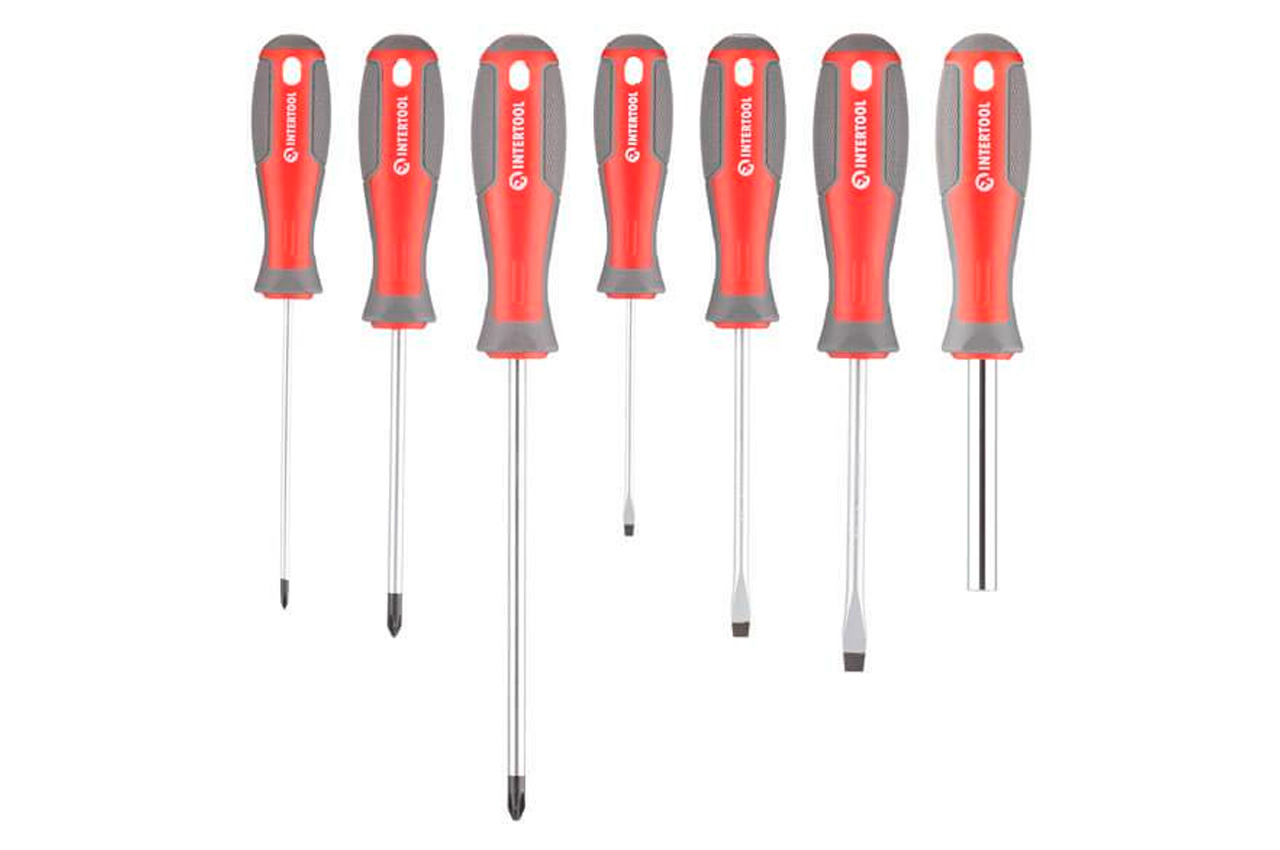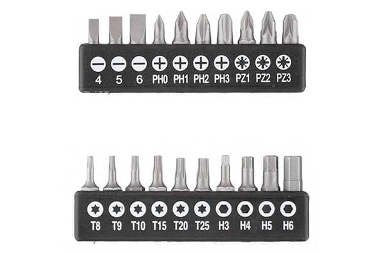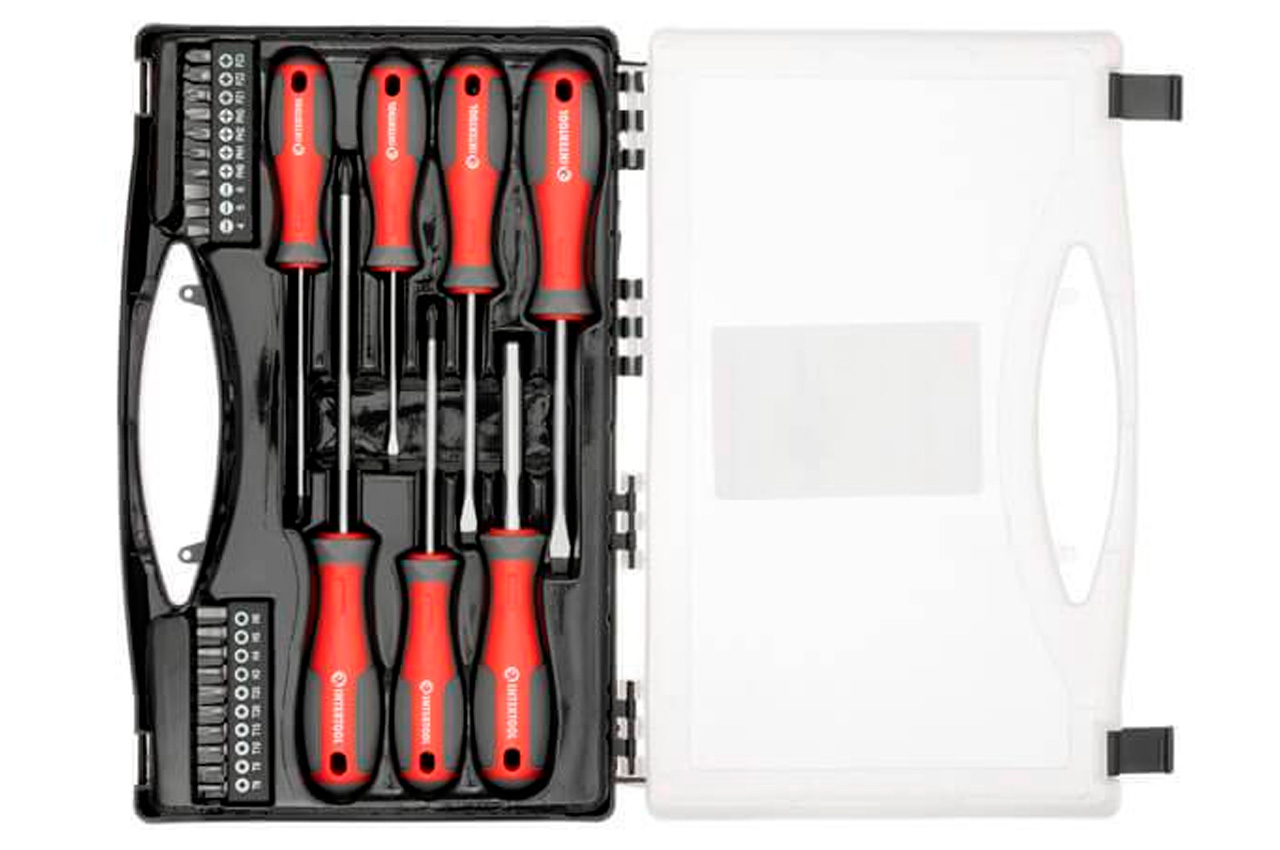 Набір викруток виготовлений за останніми технологіями і відповідає високим запитам майстрів. Призначений для монтажу і демонтажу різьбових з'єднань з різними типами шліцов. Даний комплект стане відмінним помічником в домашньому арсеналі інструменту, а також у власній майстерні, на виробництві. Висока якість стали Стрижень викруток і все насадки виготовлені з міцної Cr-V стали, яка відома всім майстрам своєю надійністю і витривалістю. У складі цієї стали присутні хром і ванадій, які надають виробу високу стійкість до зношування. Також сталь відрізняється довговічністю і не схильна до крихкого руйнування. Конструкція викруток продумана до дрібниць Стрижень глибоко посаджений в рукоятку і кріпитися в двох місцях, що виключає можливість зриву. Намагнічений наконечник Викрутки мають посилений магнітний наконечник, який утримує кріплення і полегшує роботу в важкодоступних місцях. Зручна рукоятка Форма ручок забезпечує максимальну ефективність від прикладеного зусилля. Прорезиненная двокомпонентна рукоятка зручно лежить в руці і не вислизає з долоні. Яскрава маркування на кінці рукоятки дозволяє швидко знайти необхідний тип і розмір викрутки. Кейс Набір укомплектований в компактний кейс (330 * 220 * 50 мм) з ручкою для транспортування і з двома засувками. Викрутки розміщені в власних осередках, біти знаходяться в власниках. При перенесенні нічого не випадає і не втрачається. Маркування біт в власниках дозволяє швидко відшукати необхідну насадку. Комплектація Викрутка з магнітним утримувачем для насадок 1/4 "100 мм; викрутки: SL3 * 75мм, SL5 * 100мм, SL6 * 100мм, PH2 * 150мм, PH1 * 100мм, PH0 * 100мм; біти: SL4, SL5, SL6, PH0, PH1, PH2, PH3, PZ1, PZ2, PZ3, T8, T9, T10, T15, T20, T25, H3, H4, H5, H6. Матеріал рукояток: двокомпонентні, прогумовані; Довжина викрутки: 75, 100, 150 мм; Кількість в наборі: 27 од.