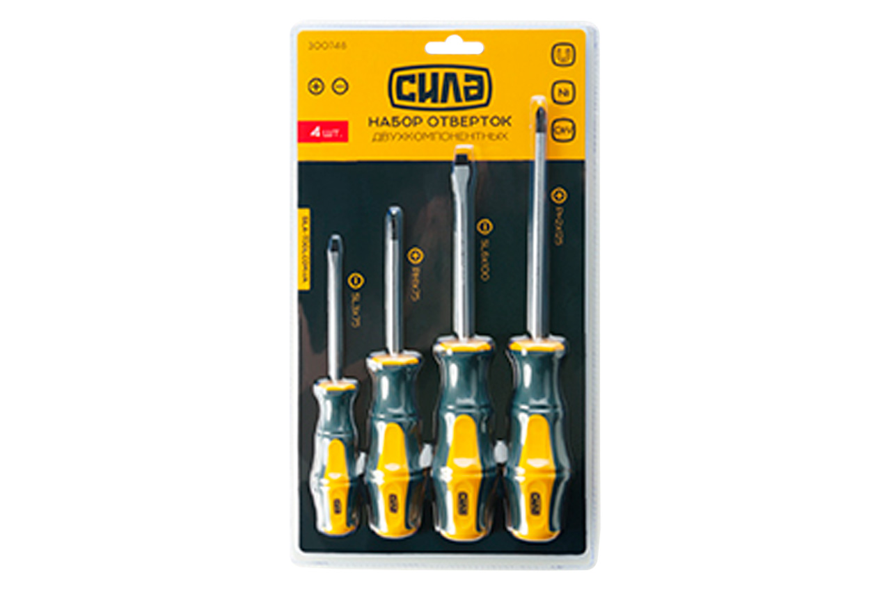 Стрижень кожної з викруток виготовлений з міцної хромванадієва сталі, що забезпечує довгий термін служби інструменту. Магнітне жало із загартованої сталі полегшує роботу з інструментом. Ергономічна прогумована рукоятка забезпечує комфорт і безпеку під час роботи. Матеріал рукоятки: пластик, термопластичная гума; Матеріал стержня: хром-ванадієва сталь; Набір: SL3x75; SL6x100; PH1x75; PH2x125; Тип викрутки: стандартна
