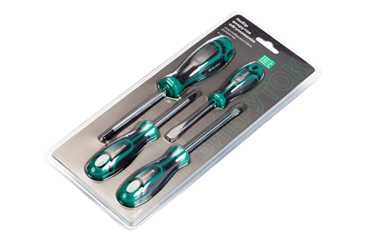Набір універсальних викруток Сила - надійний і зручний помічник для виконання різних ремонтних і будівельних робіт. Набір входять 4 викрутки з різними наконечниками: шліцеві SL6, SL8; хрестові PH1, PH2.