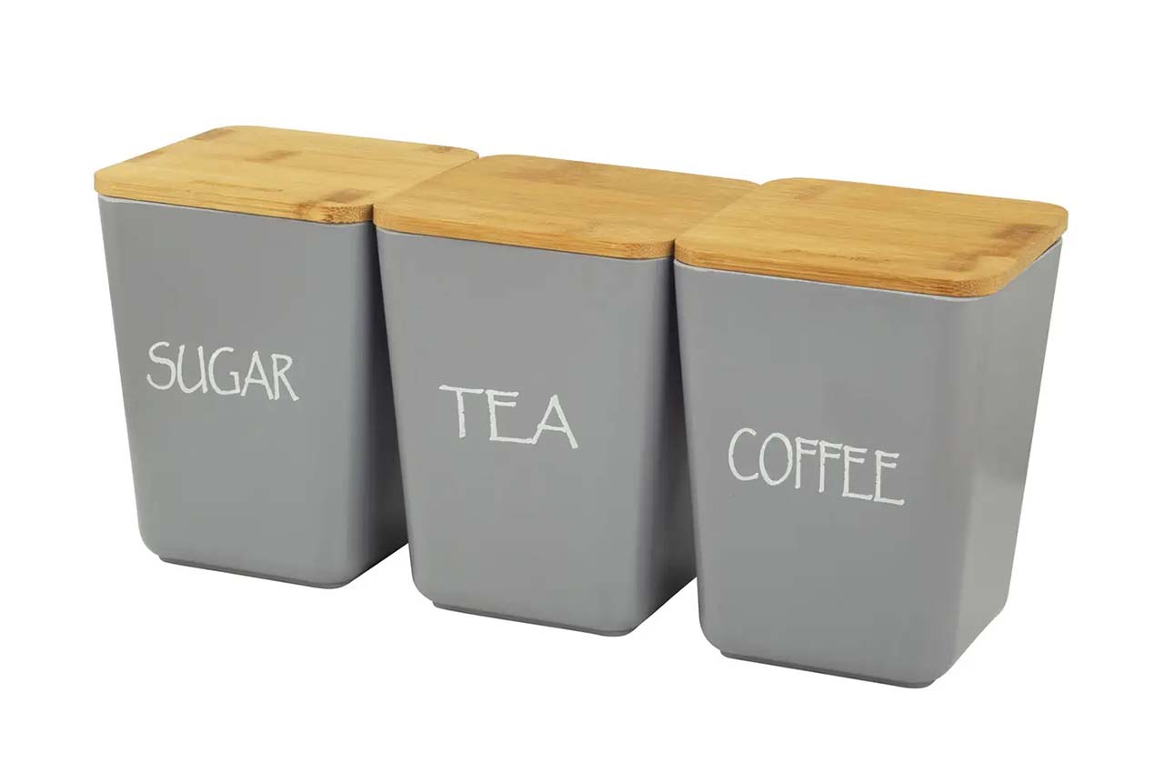 Набір ємностей бамбукових Kamille - 110 x 110 x 145мм сірі (3шт)