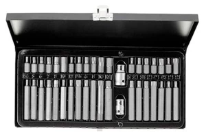Набір зірок і шестигранників 40ед. різних типорозмірів застосовується для кріплення елементів деталей шестигранної форми. Виготовлені з хромванадієва стали, яка забезпечує високі експлуатаційні показники і захист від корозії. Запобігають стирання кордонів, забезпечують високий крутний момент. Всі головки розміщені в спеціальній кріпильної коробці.