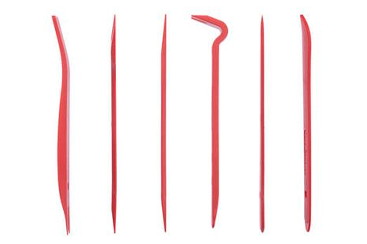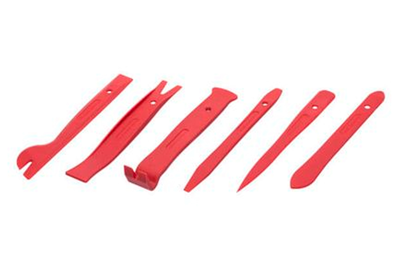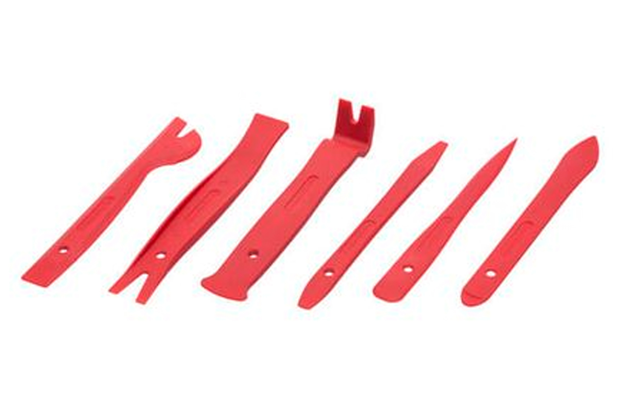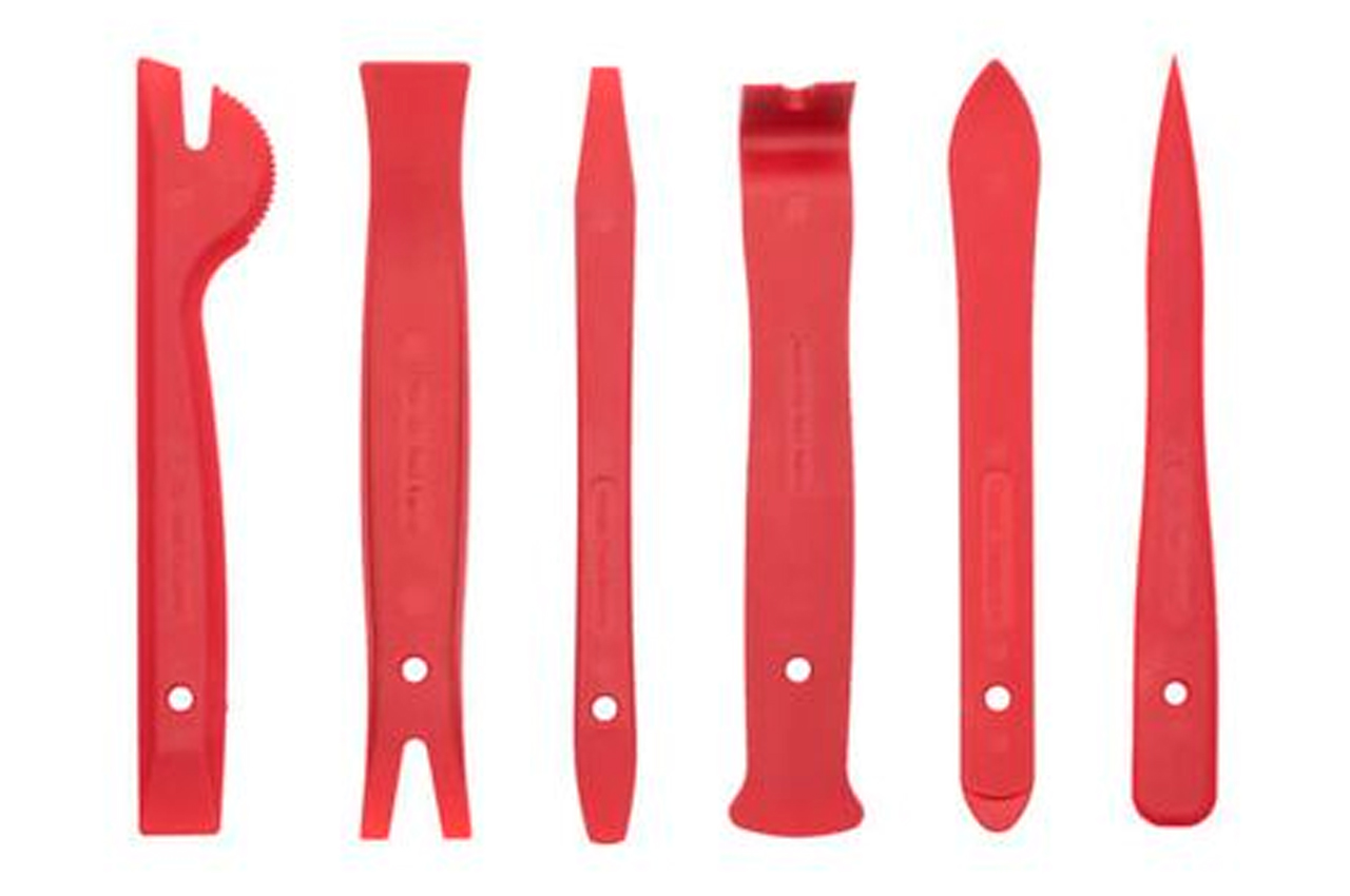 Комплект знімачів АТ-0151 призначений для швидкого і якісного демонтажу обшивки салону, декоративних панелей, молдингів та інших елементів інтер'єру. Даний набір складається з найбільш популярних знімачів, які чудово підійдуть для розбирання салону автомобілів. До набору входять 6 предметів різної форми: з круглими, гострими, широкими і вузькими краями, які дозволяють працювати з більшістю панелей обшивки. На знімачах є спеціальні прорізи для демонтажу кліпс кріплення. Всі знімачі дуже міцні та довговічні, адже виготовлені з нейлону, що чудово витримує навантаження на стискання і розтягування. Цей матеріал дозволяє підвищити якість роботи, оскільки він не лишає подряпин і вм'ятин на поверхні деталей, що знімаються.