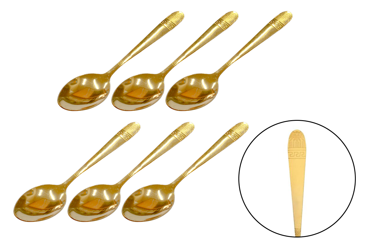Набір золотистих чайних ложок з візерунком "Грецький меандр" (6шт)