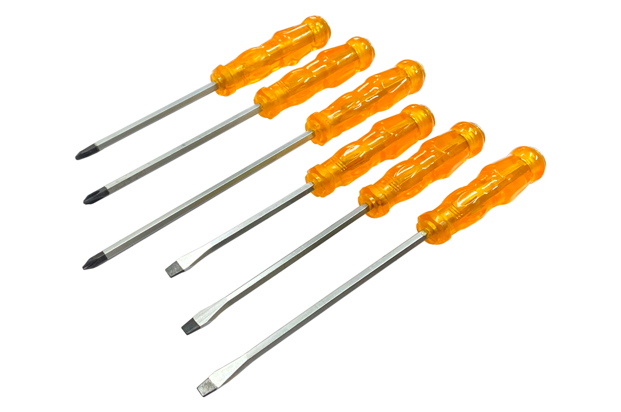 Набір жовтих викруток, прозора ручка пластик - 6 шт