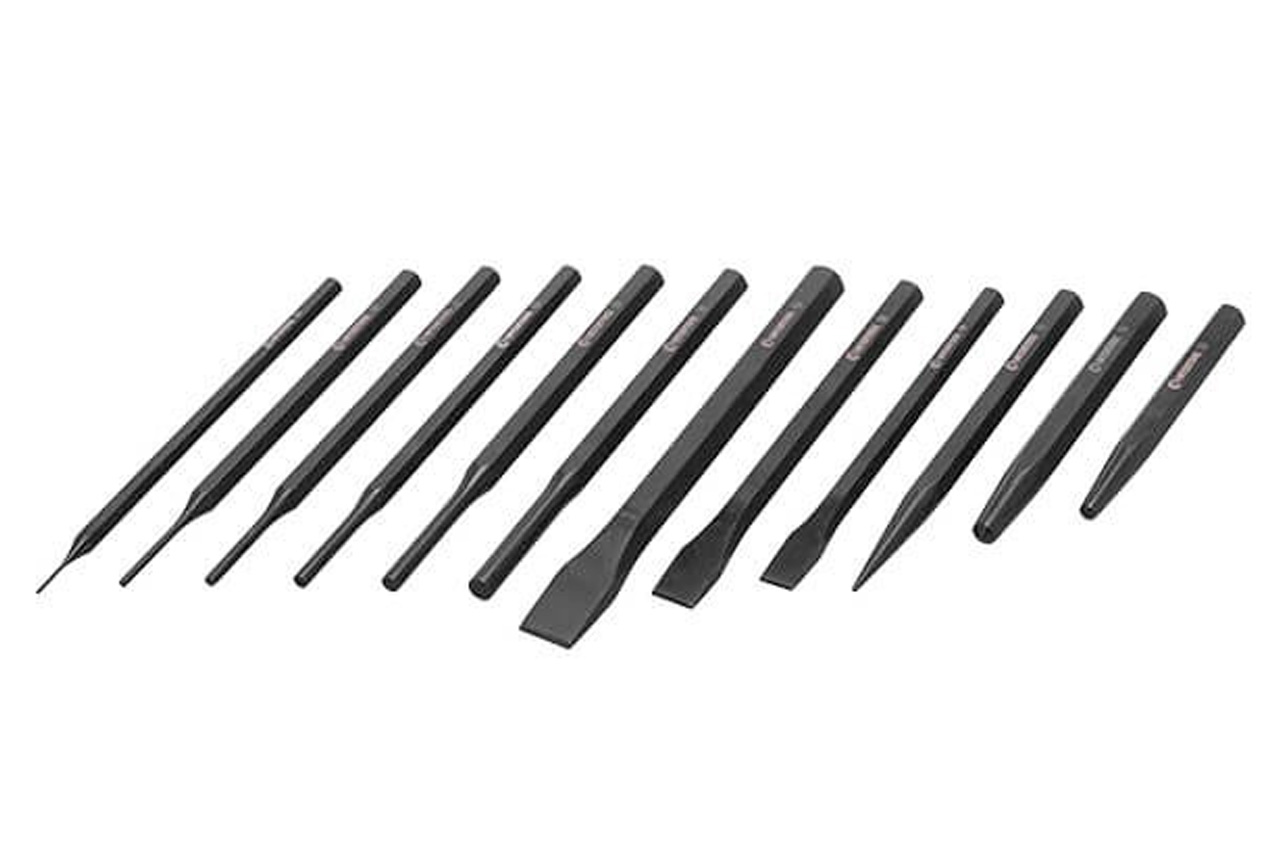 Набір зубил, кернерів та виколоток HT-0289 складається з 12 предметів, яким знайдеться застосування на СТО, виробництвах, заводах, спеціалізованих майстернях, і навіть у гаражі у автолюбителів. Всі інструменти підходять для роботи з металом, каменем та іншими твердими поверхнями, тому активно використовуються як професійними майстрами, так і в побуті. Інструменти виготовлені з легованої хром-ванадієвої сталі, що забезпечує захист від корозії, а також гарантує чудові експлуатаційні якості, високу міцність та стійкість до навантажень. Комплектація набору: Вибивання (пробійники) діаметром 1.5, 3, 4, 5, 6, 8 мм; Кернери – 2, 6, 8 мм Зубила із шириною леза 10, 13, 16 мм.